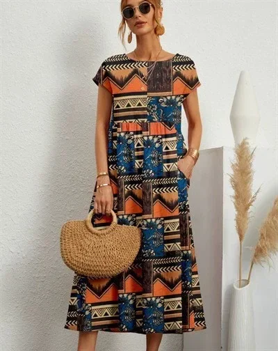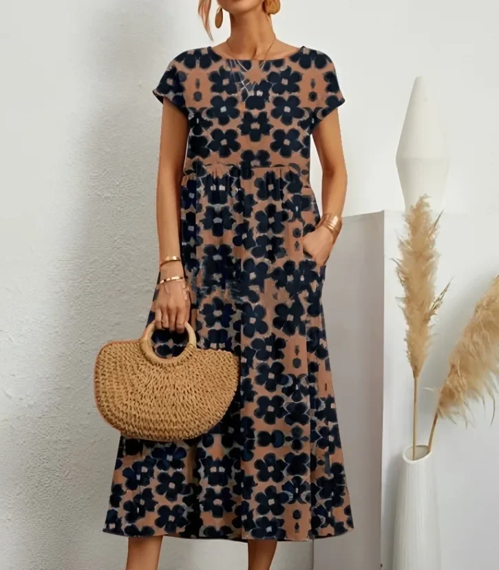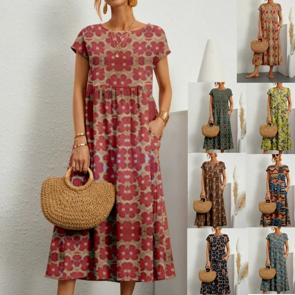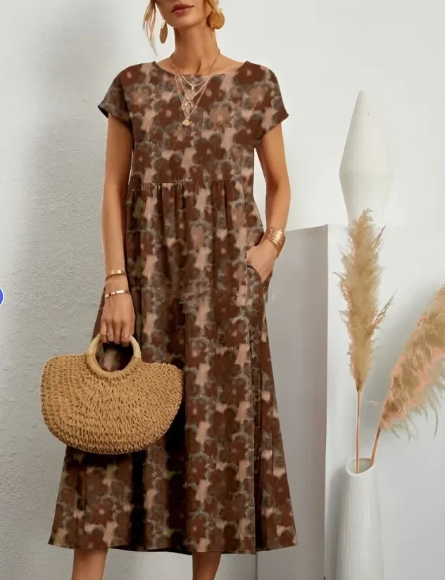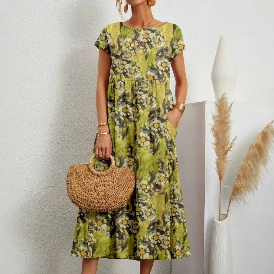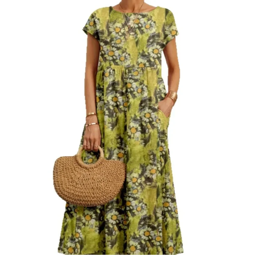 • Cotton and Linen Material : Crafted from a blend of cotton and linen, this dress offers a comfortable and breathable wear, perfect for summer days.