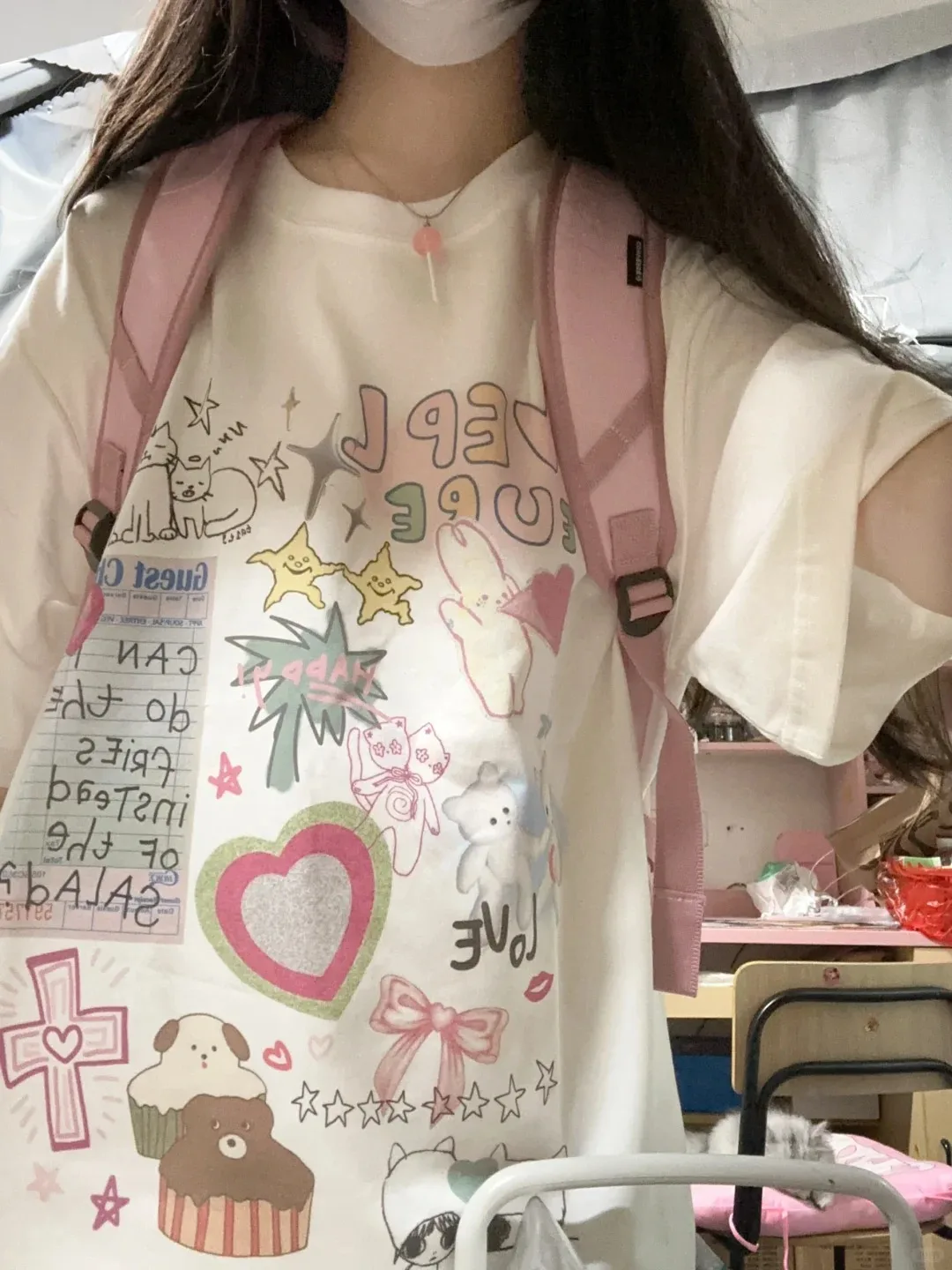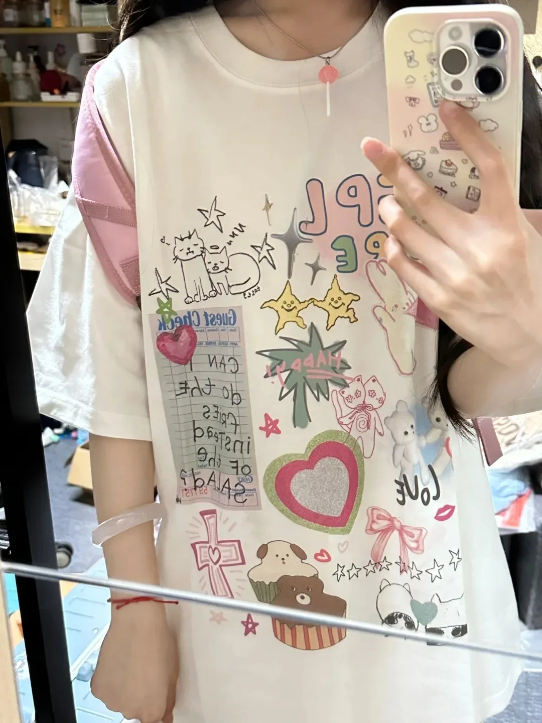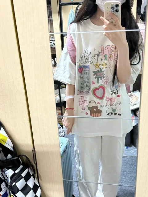 The T-shirt boasts a vibrant cartoon print, adding a touch of creativity and fun to your wardrobe.