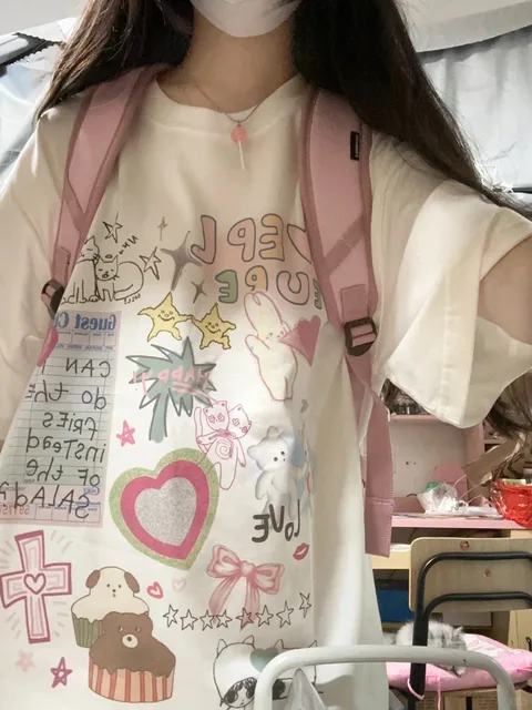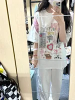 This T-shirt features a Korean style design, offering a trendy and fashionable look for both men and women.