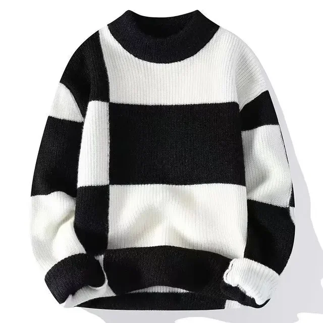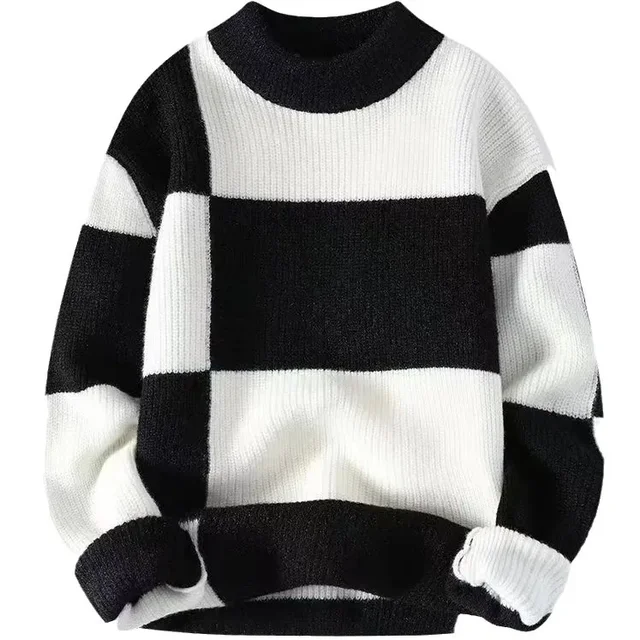 Loose Crew Neck Pullover Sweater Men’s Autumn Winter Fashion Brand Lazy Style Color Block round