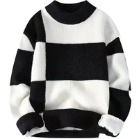 Loose Crew Neck Pullover Sweater Men's Autumn Winter Fashion Brand Lazy Style Color Block round Neck Simple Match Top
