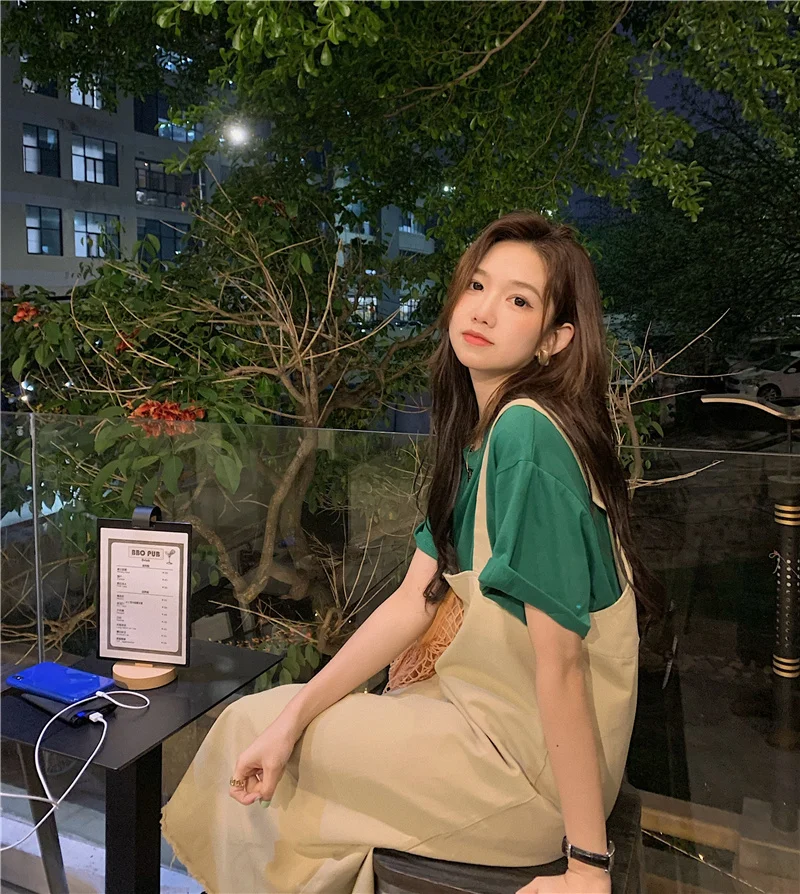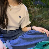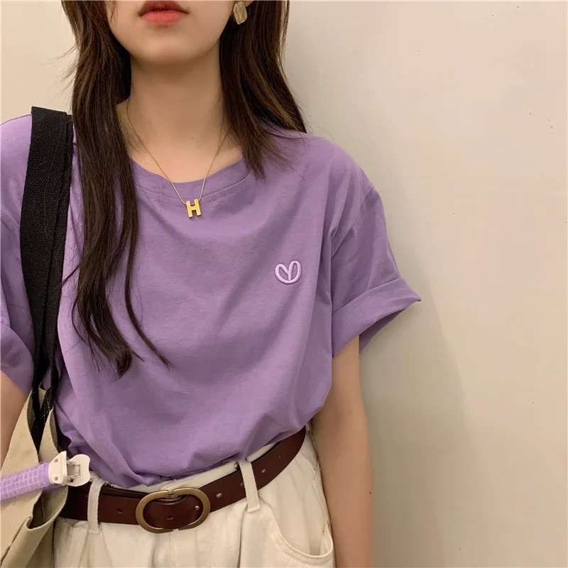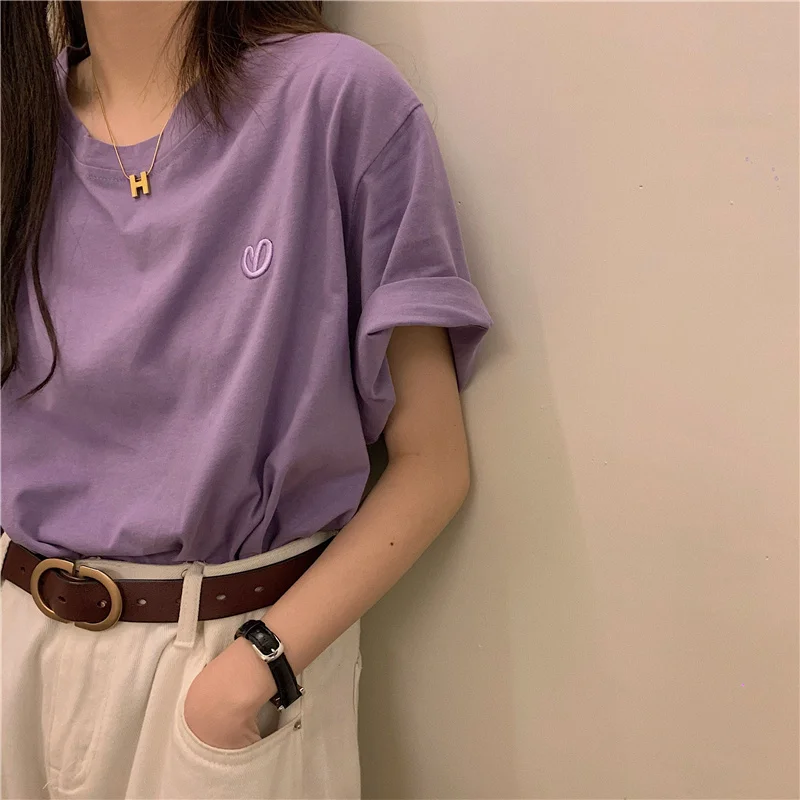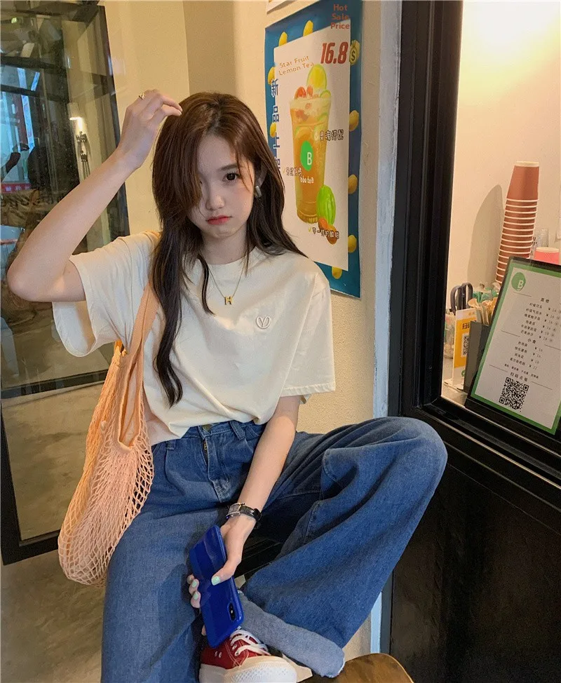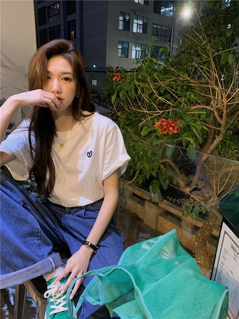 This green short-sleeved T-shirt features a trendy letter embroidery design, perfect for layering or as a standalone piece.