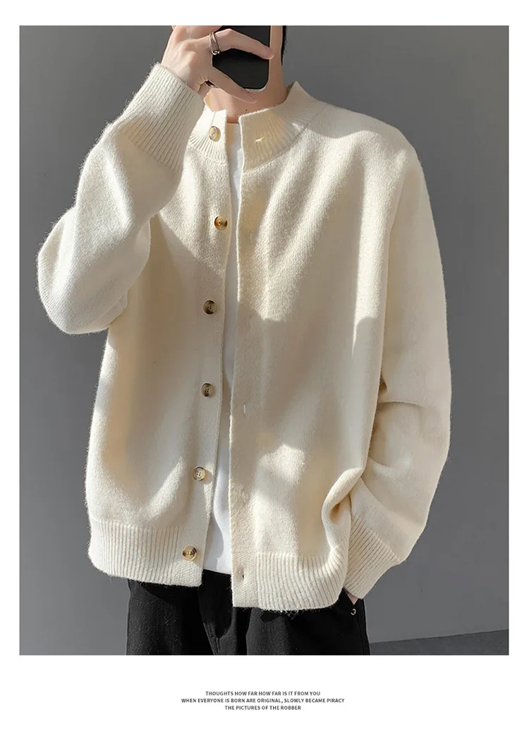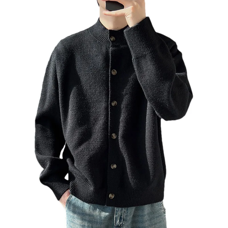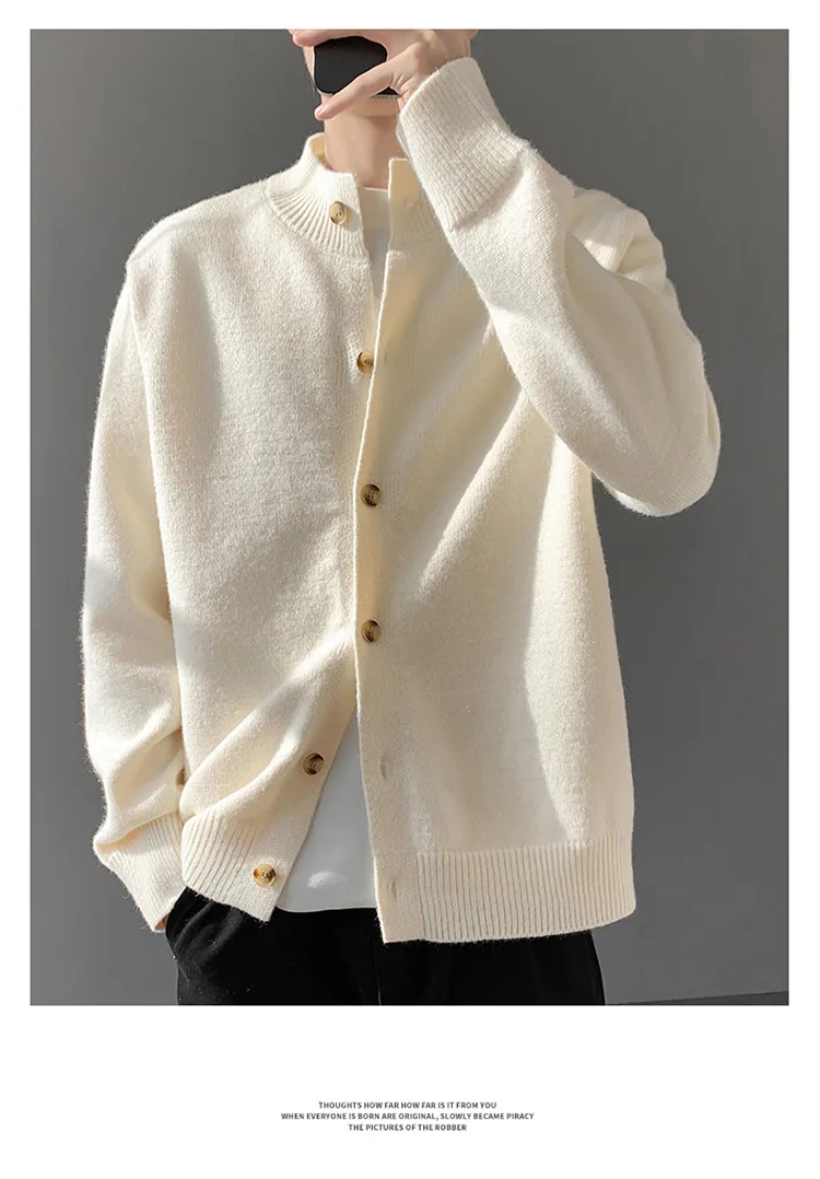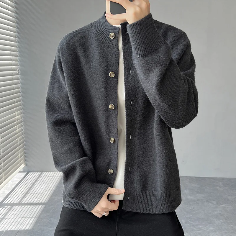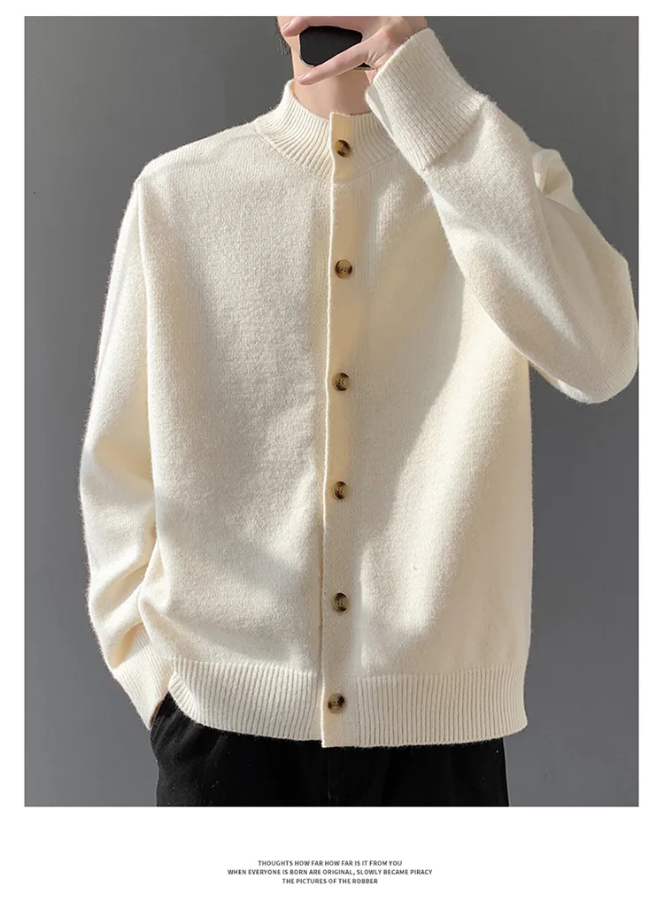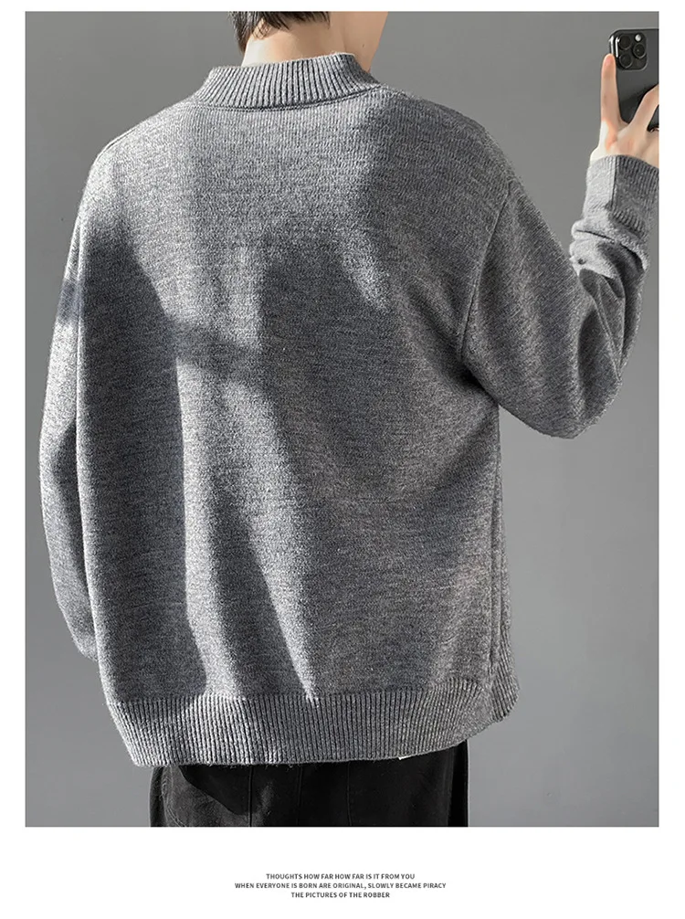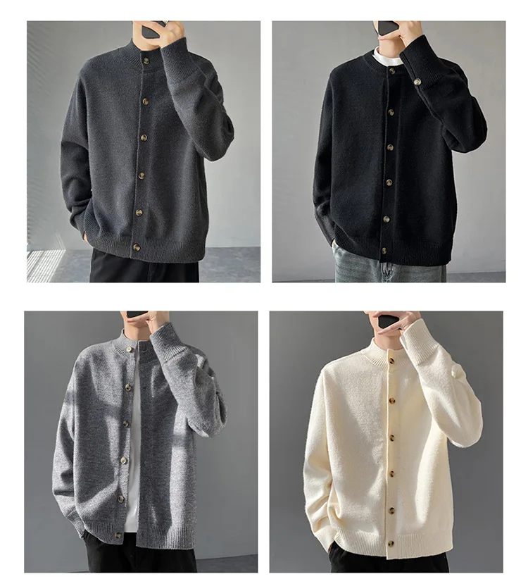 Loose Fit Long Sleeve Half High Collar Men’s Knitwear Cardigan Open Front Sweater Korean Style