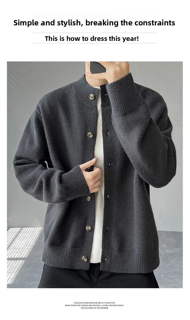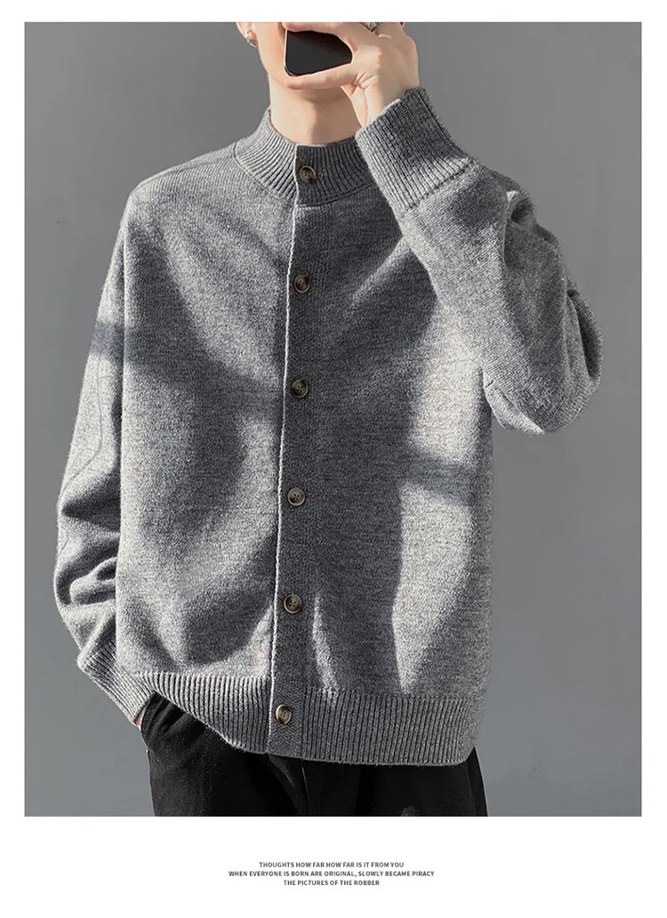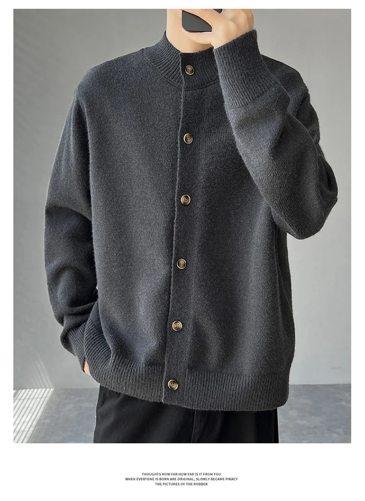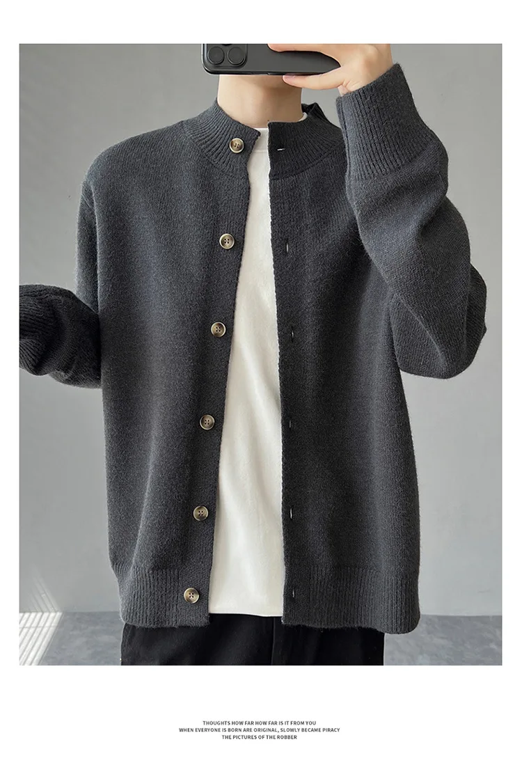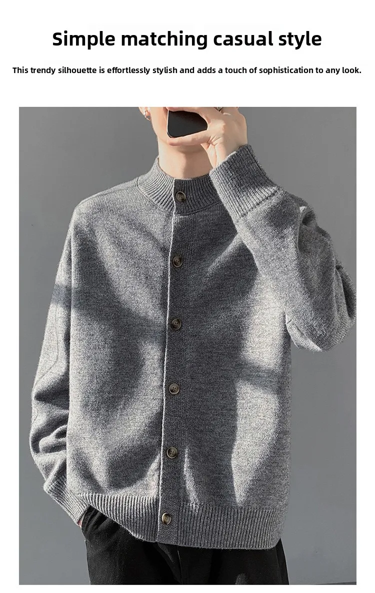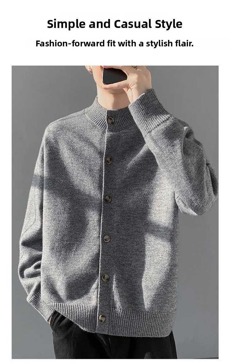 Loose Fit Long Sleeve Half High Collar Men’s Knitwear Cardigan Open Front Sweater Korean Style