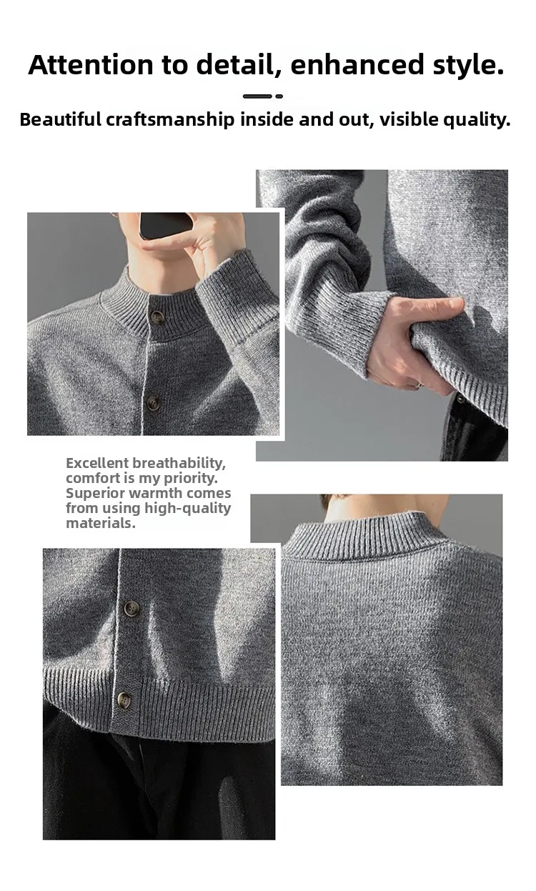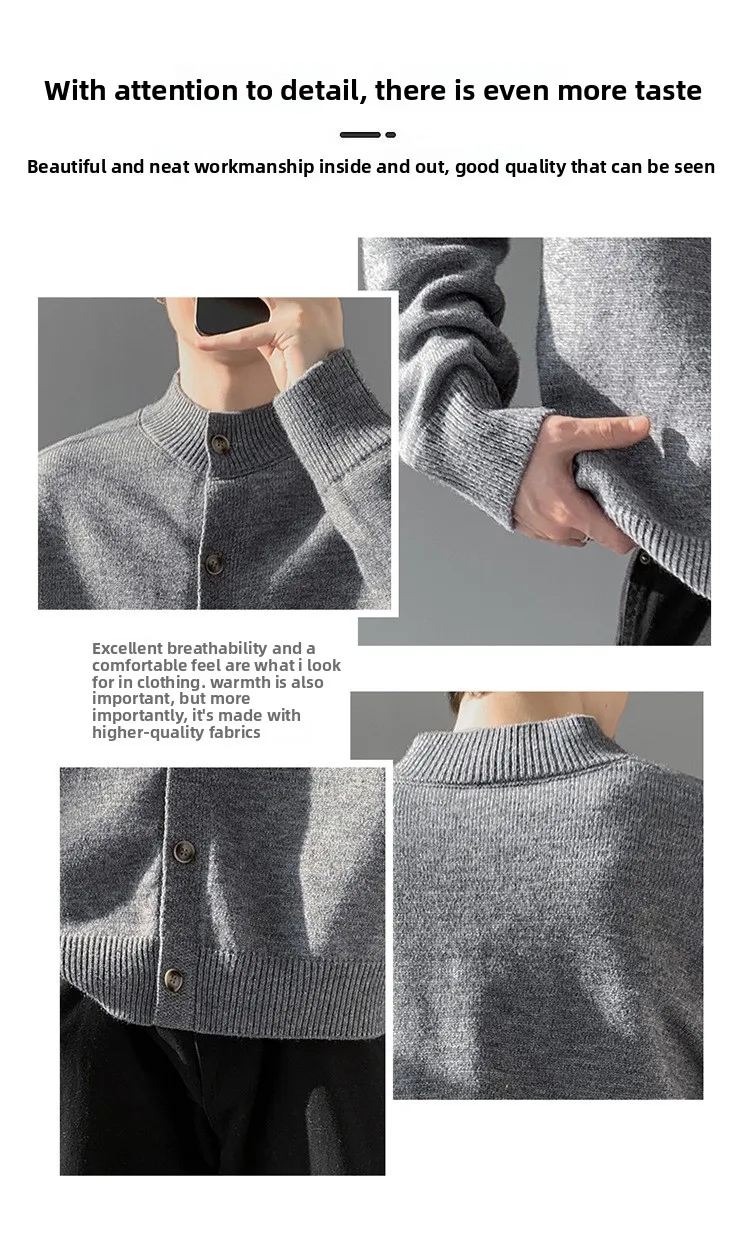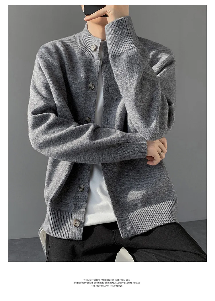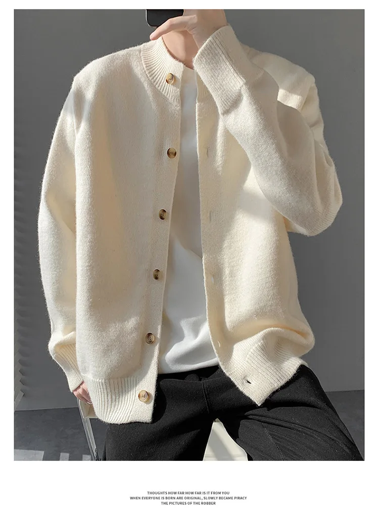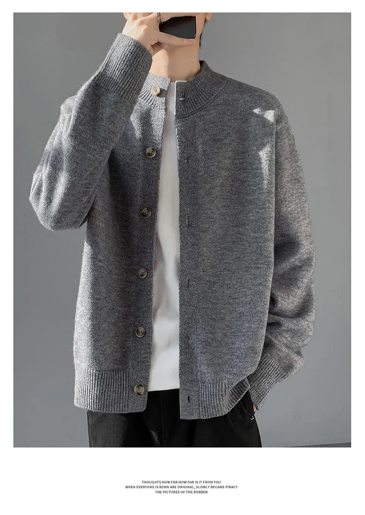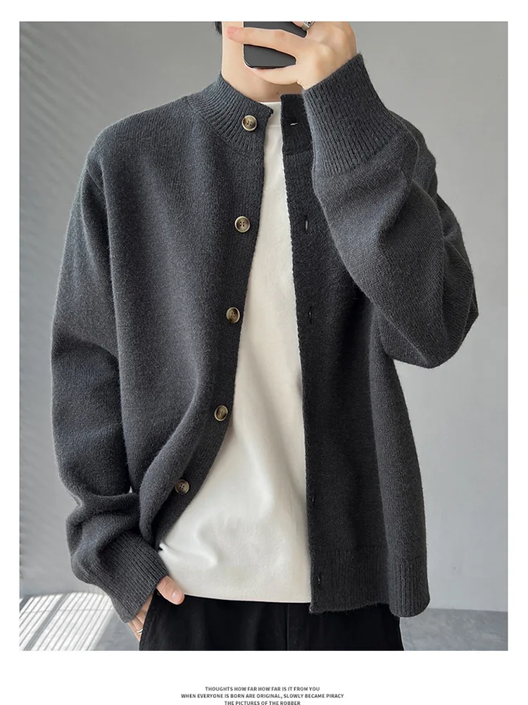 Loose Fit Long Sleeve Half High Collar Men’s Knitwear Cardigan Open Front Sweater Korean Style
