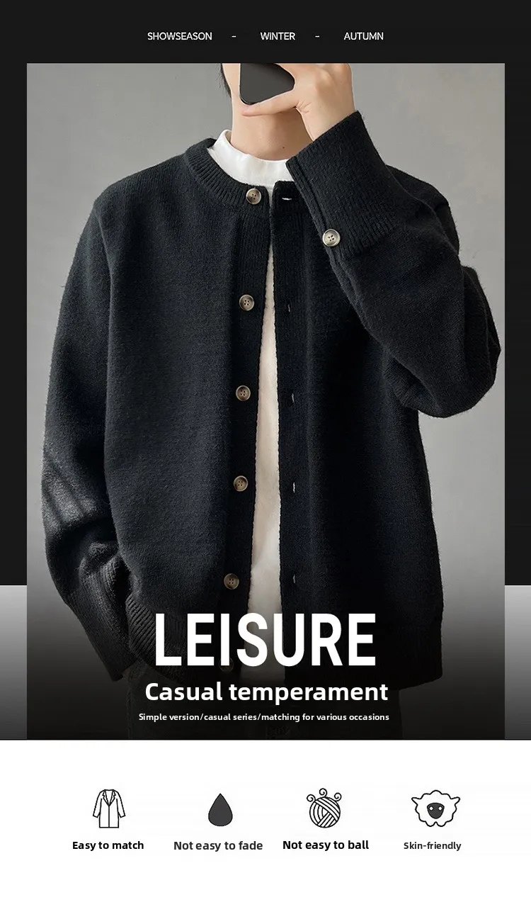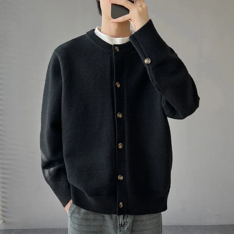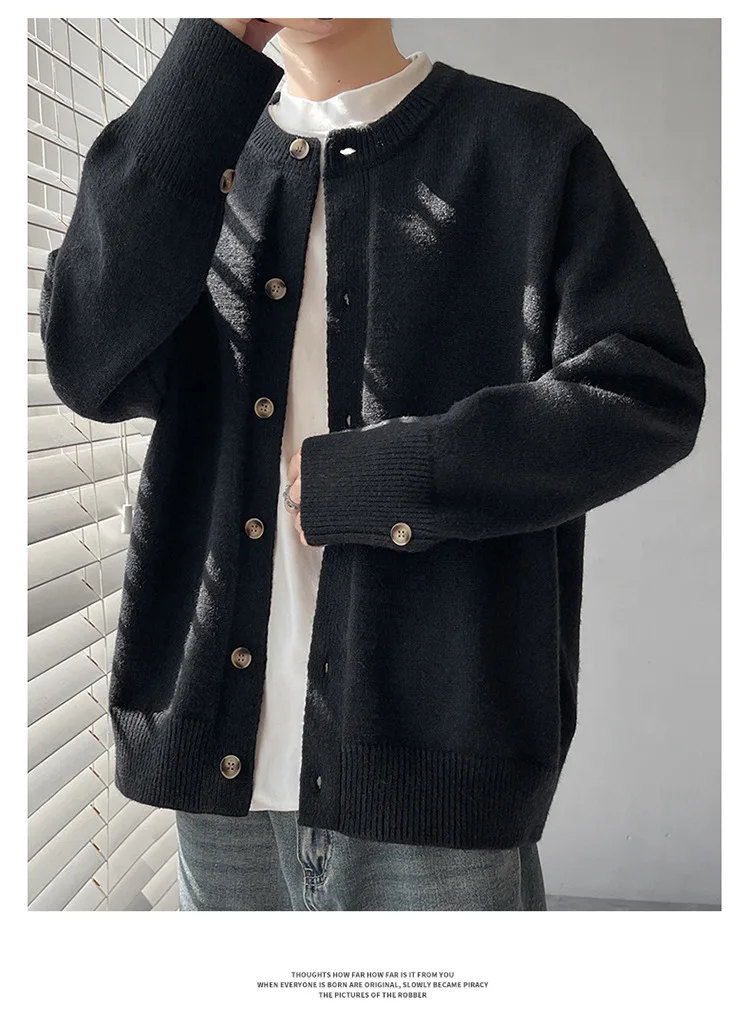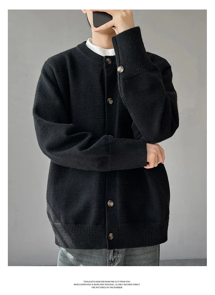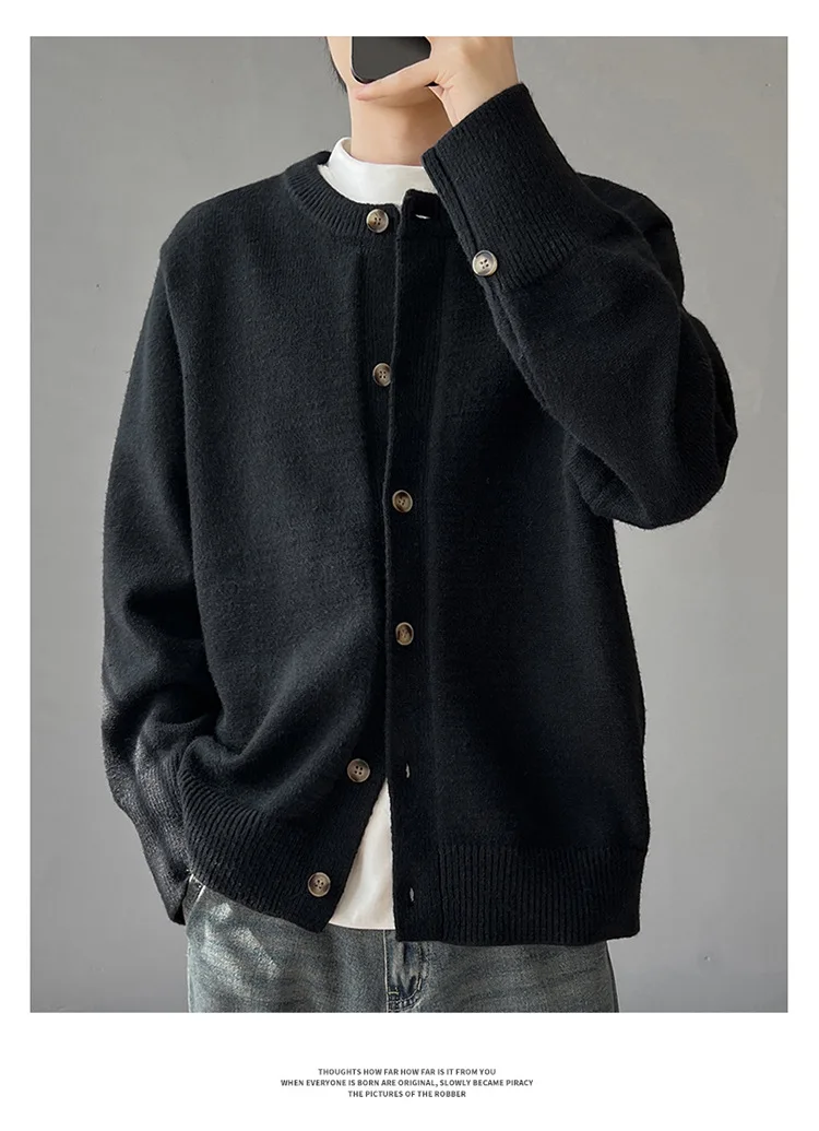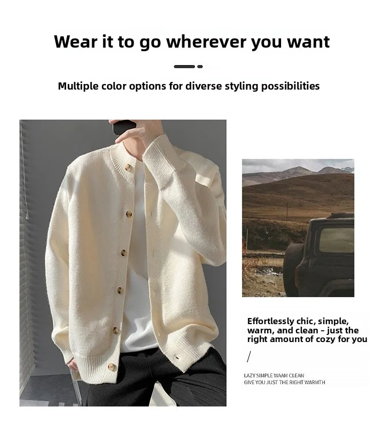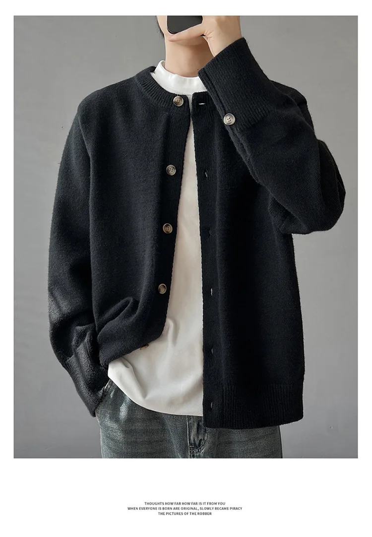 Loose Fit Long Sleeve Half High Collar Men’s Knitwear Cardigan Open Front Sweater Korean Style