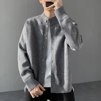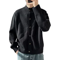 Loose Fit Long Sleeve Half High Collar Men's Knitwear Cardigan Open Front Sweater Korean Style Base Layer Shirt Top Outerwear