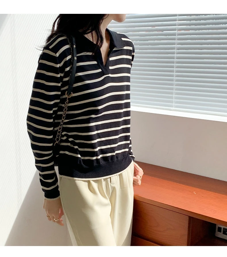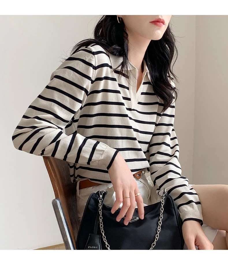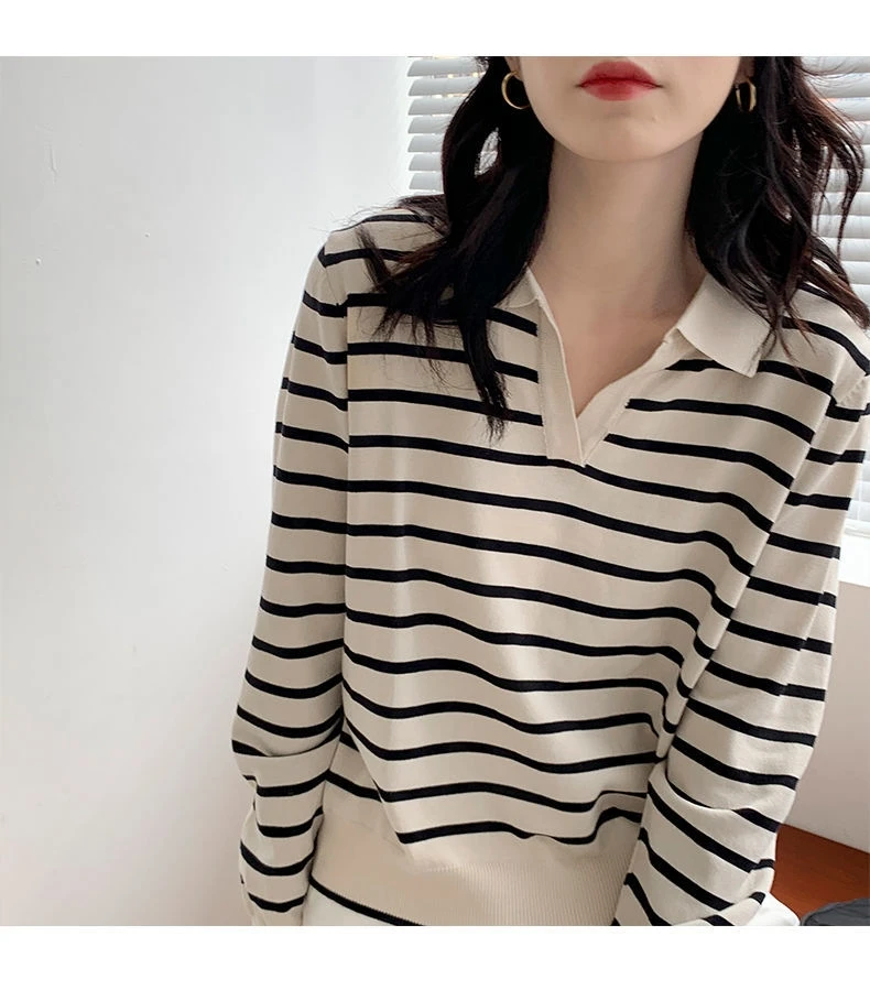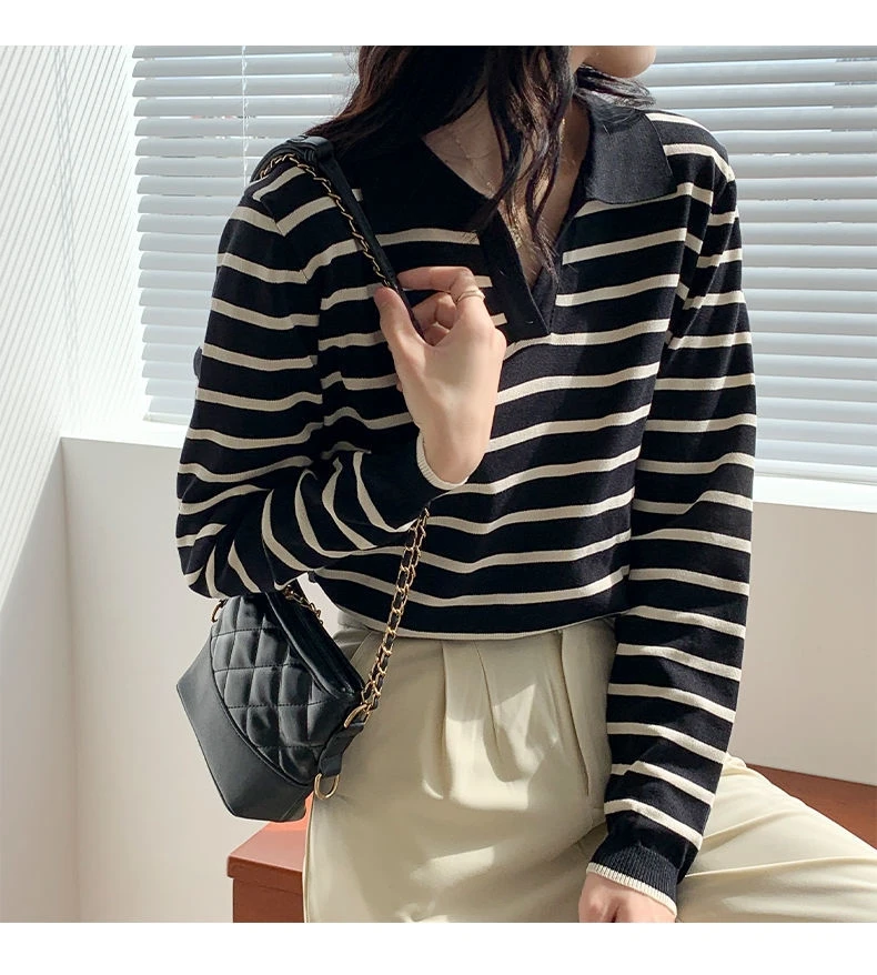 Be the first to review “Loose Knitted Long Sve V-Ne Striped Base irt Women’s T-irt Spring Autumn New Sle Commute Versatile”