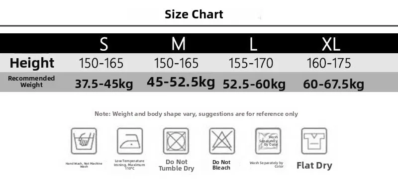 L [recommendation 52.5-60kg ]M recommendation 45-52.5kgS recommendation 37.5-45kgXl recommended 60-67.5kg