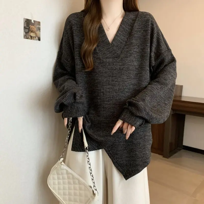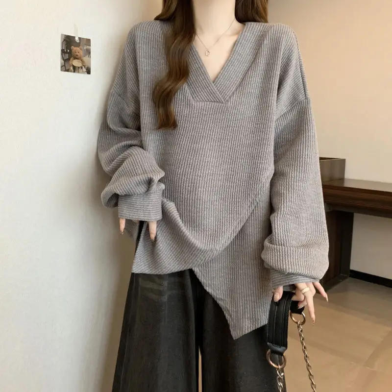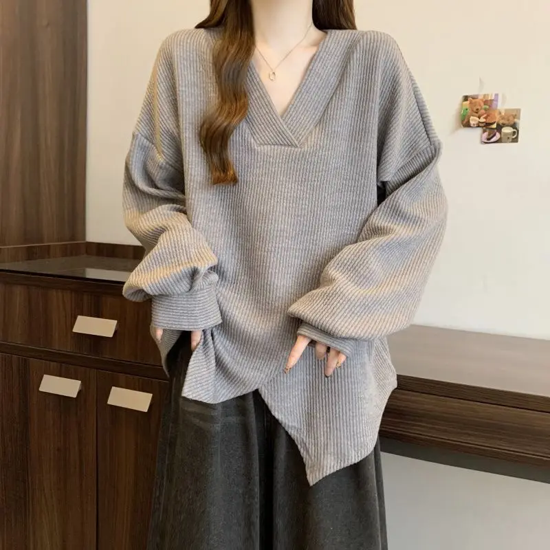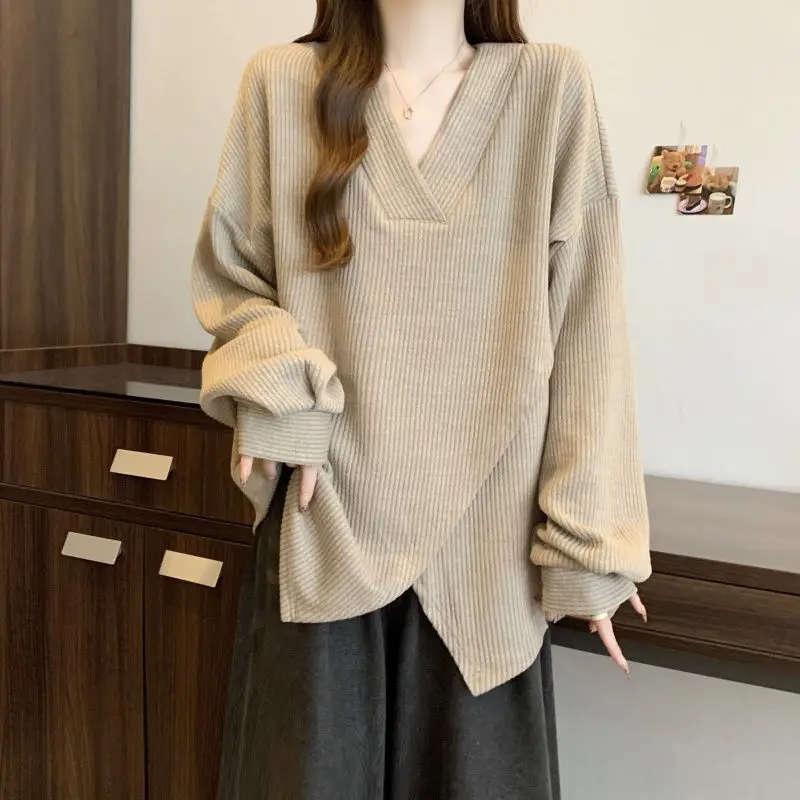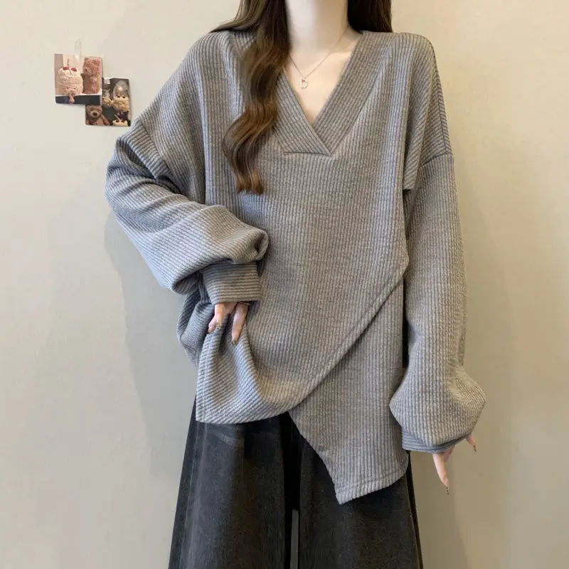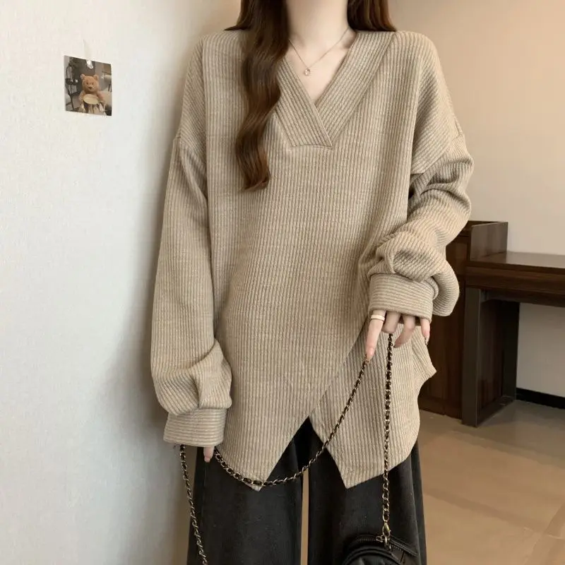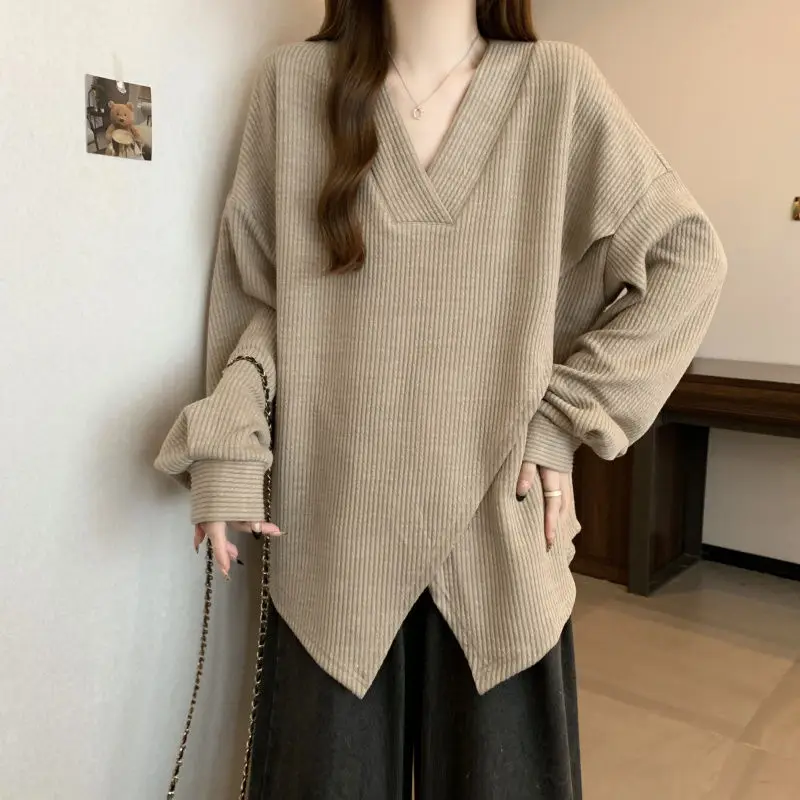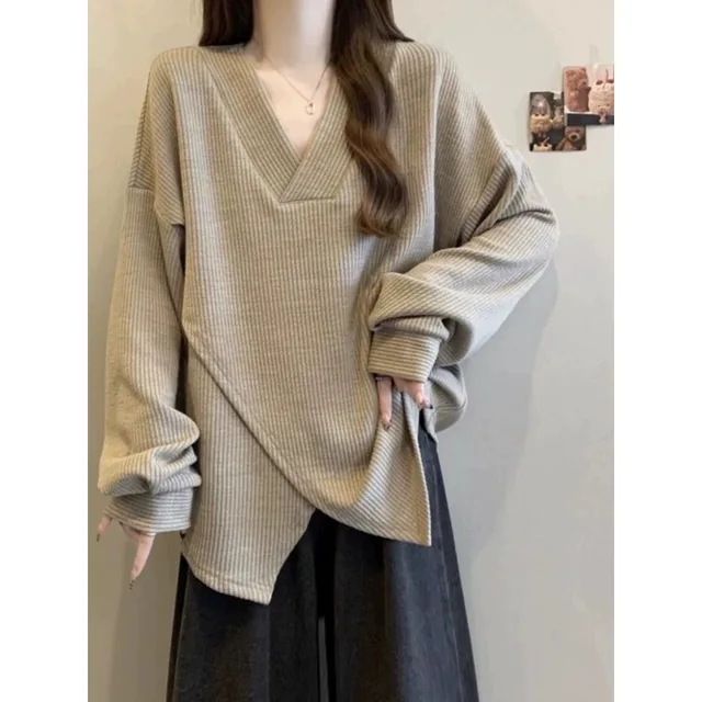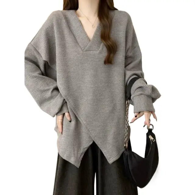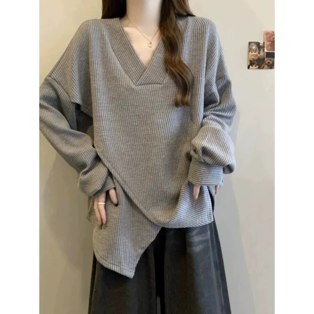 The V-neck design adds a touch of elegance to this casual sweatshirt, making it suitable for various occasions.