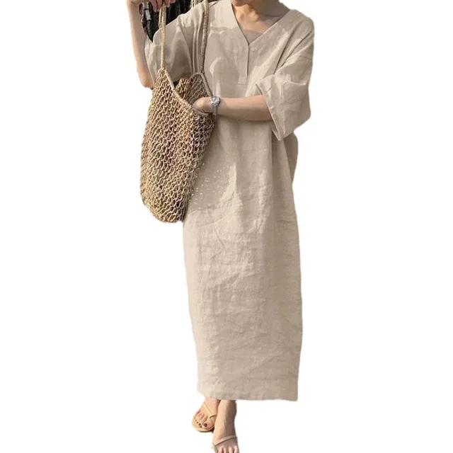Crafted from 100% cotton linen, this dress offers a soft, skin-friendly texture, enhancing your comfort.