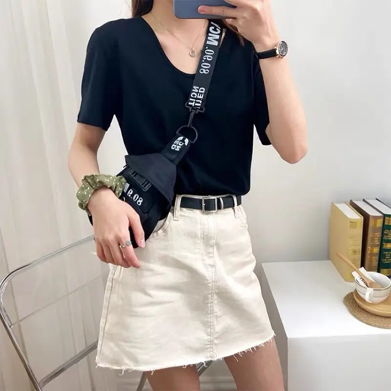 Embrace the latest Korean fashion trends with this stylish T-shirt, perfect for those seeking a trendy and fashionable look.