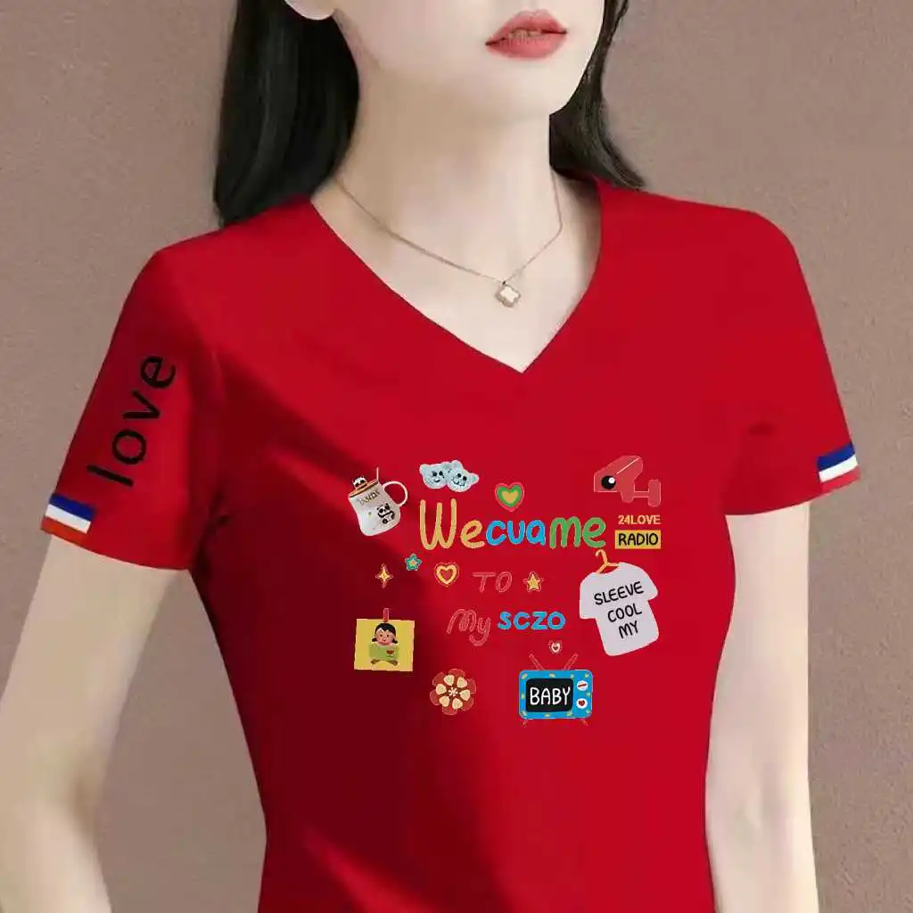 With its V-neck design and short sleeves, this T-shirt offers a versatile style that can be dressed up or down for any occasion.