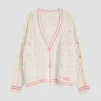 Deep Grey Wool Knitted Cardigan For Women 2026 Autumn Winter Soft And Sticky Warm Love Buckle Shoulder Sleeves