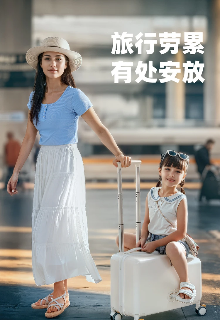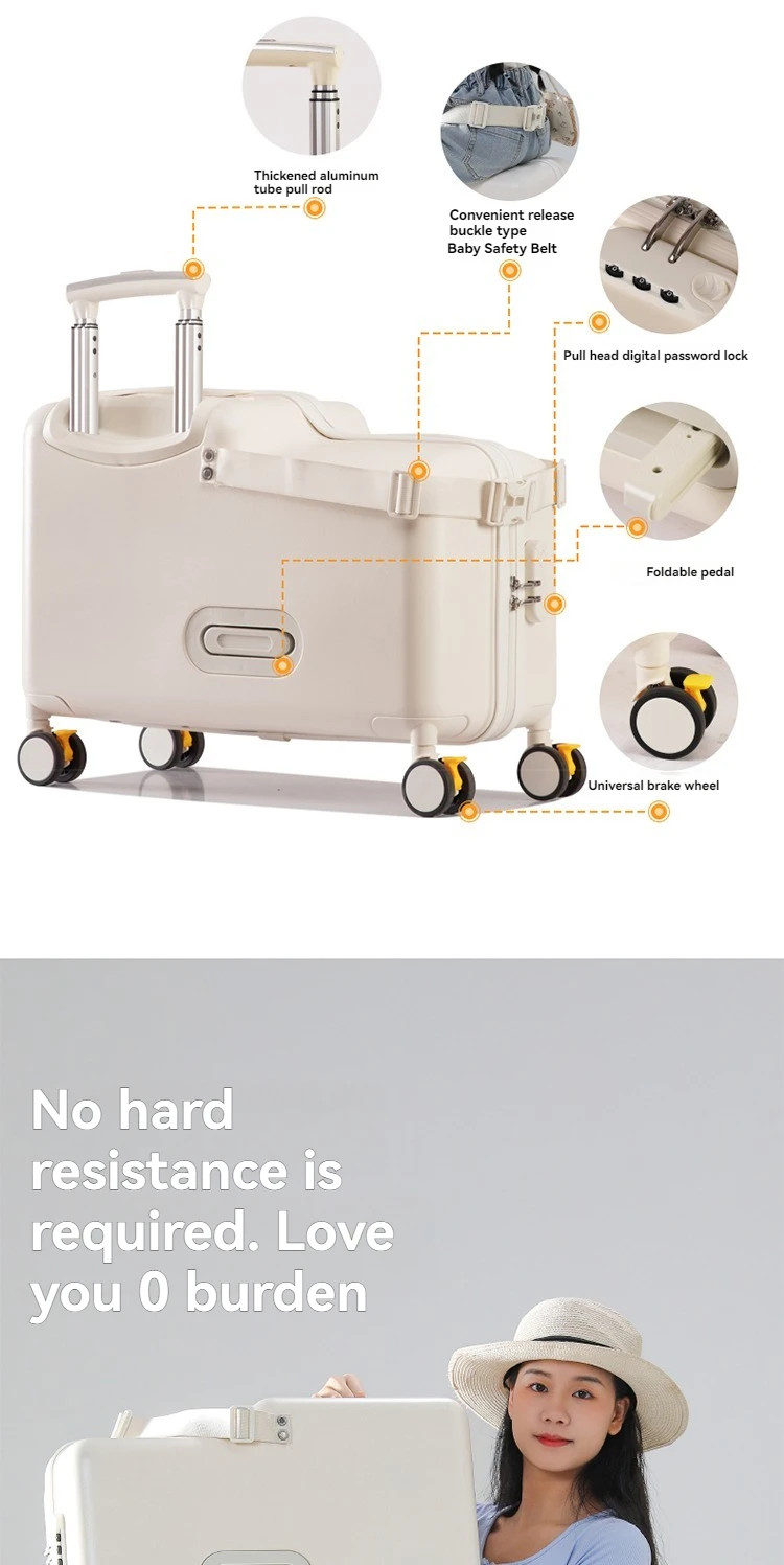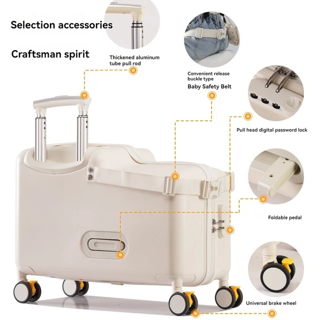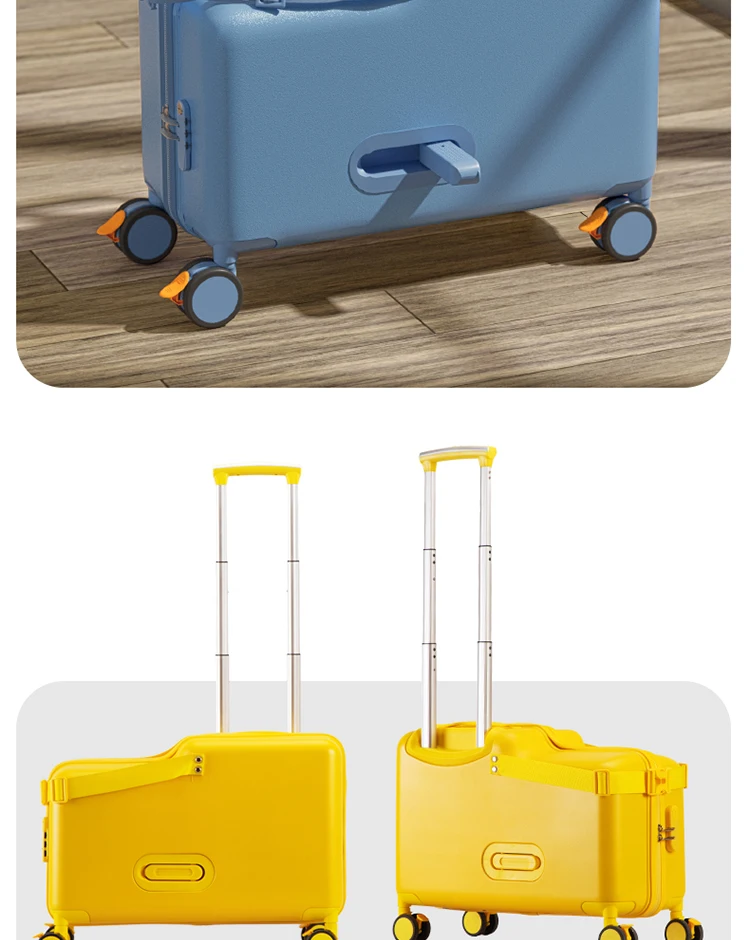 Luggage, children can sit, ride, and board, suitcase, trolley, universal wheel, brake, travel bag