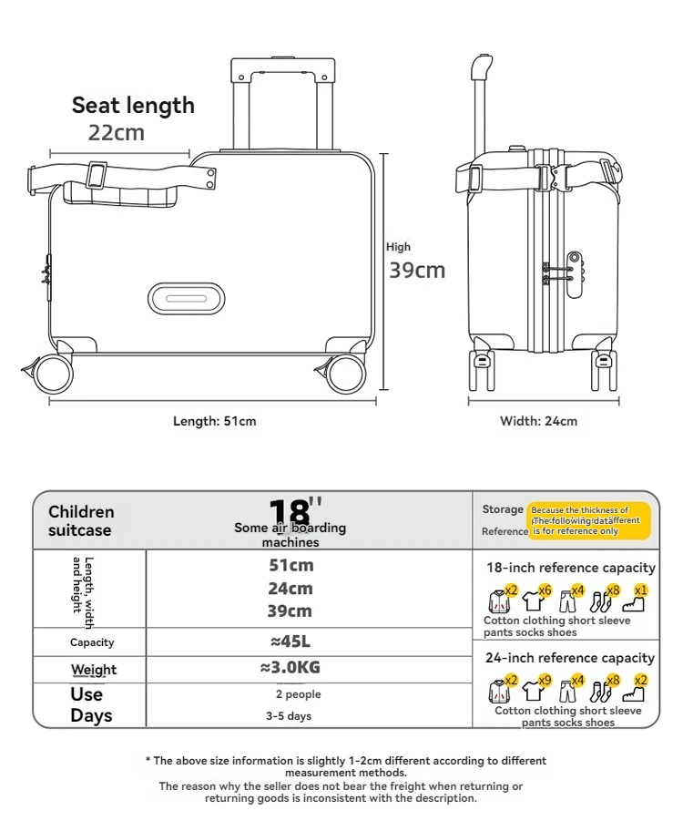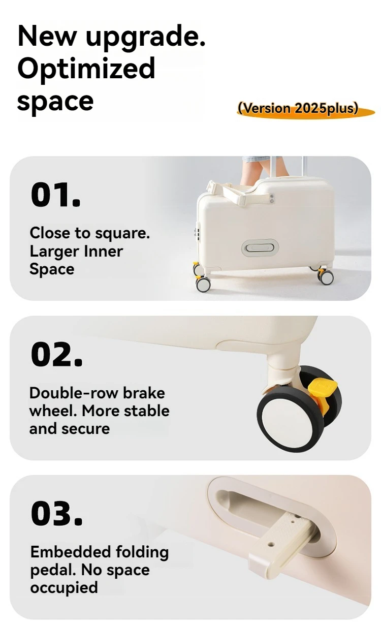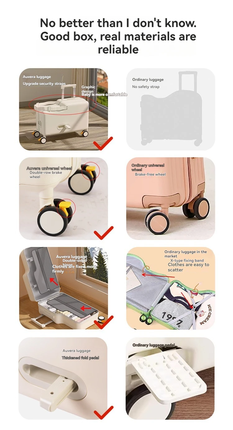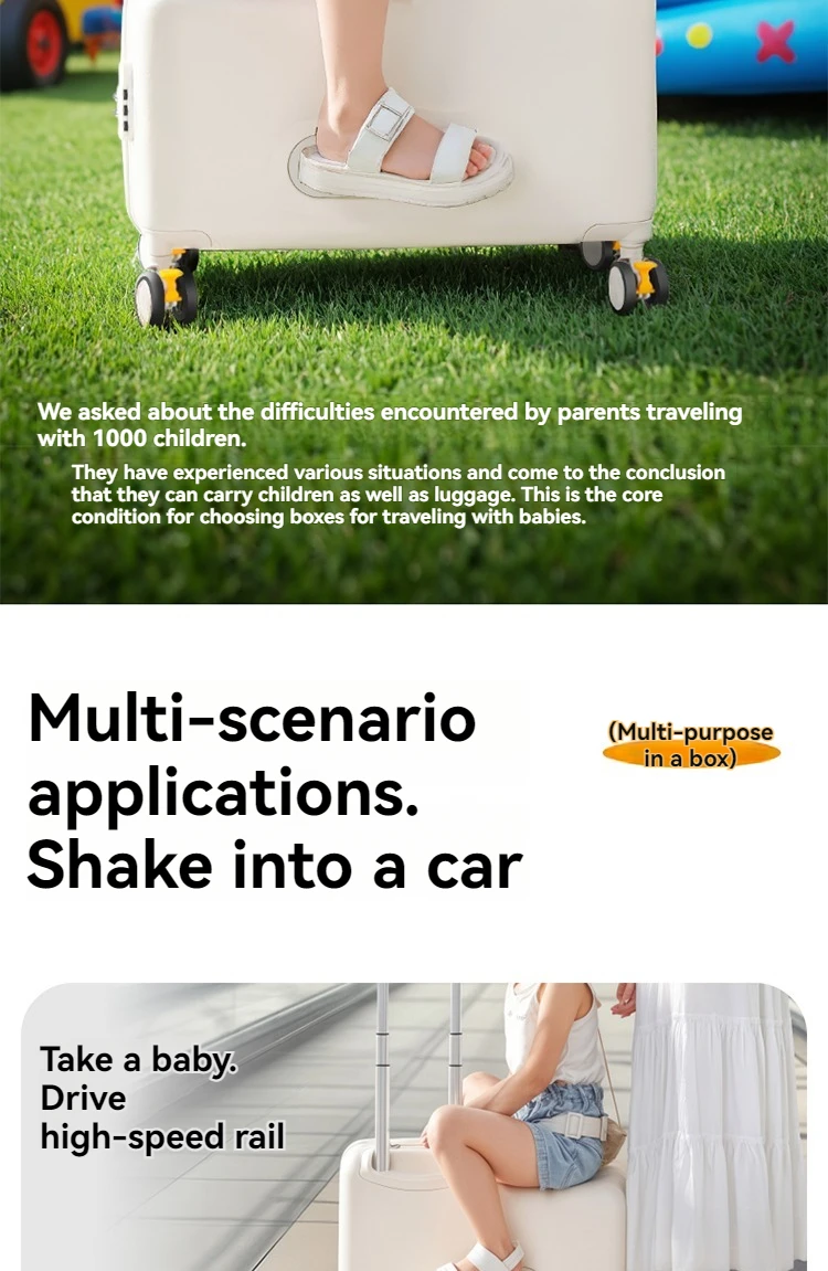 Luggage, children can sit, ride, and board, suitcase, trolley, universal wheel, brake, travel bag