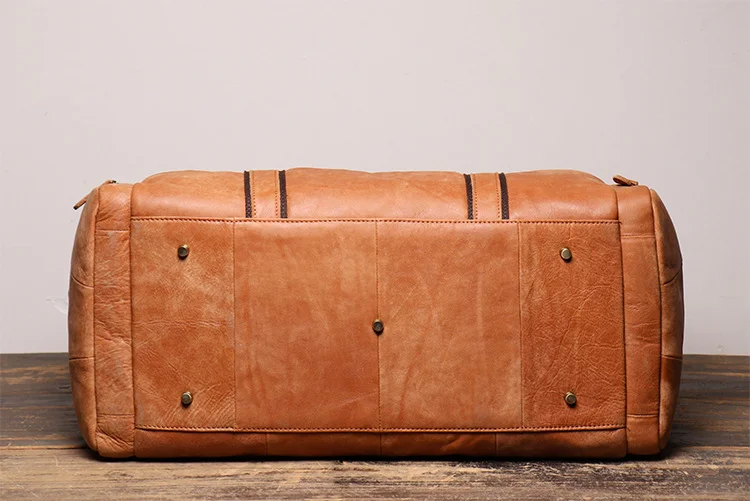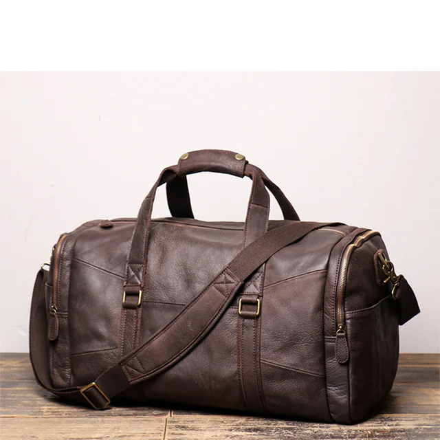 S.WORKER Vintage Genuine Leather Travel Bag Crazy Horse Cowhide Leather Duffel Bag Men's Weekender Bag Gym Bag Carry on Luggage