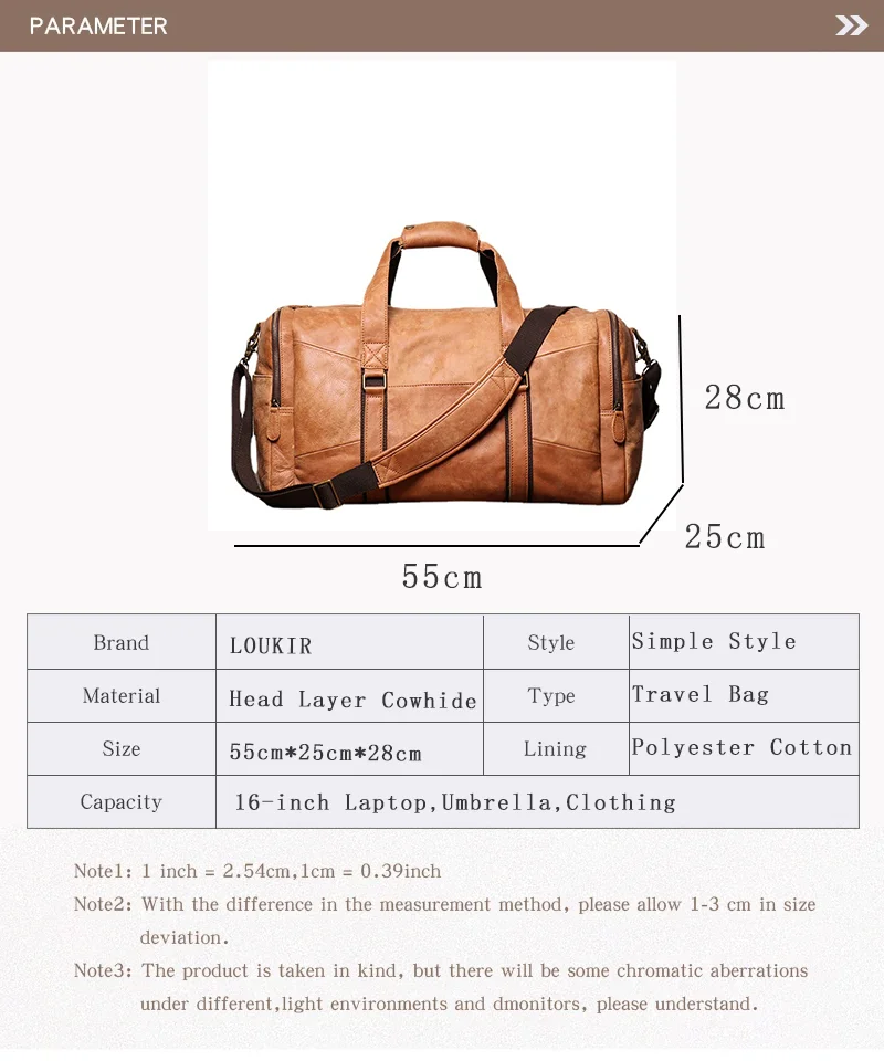 LUOKIR Retro Genuine Leather Men’s Hand-held Travel Bag Women’s Single-shoulder Crossbody