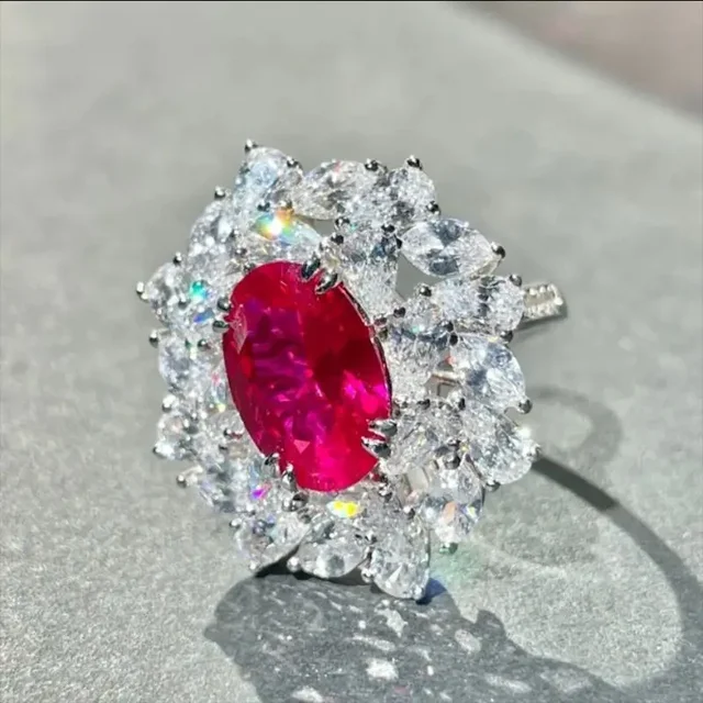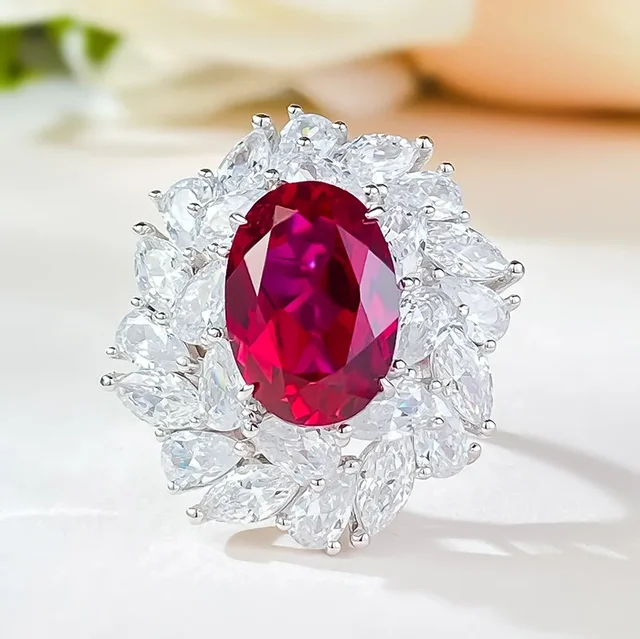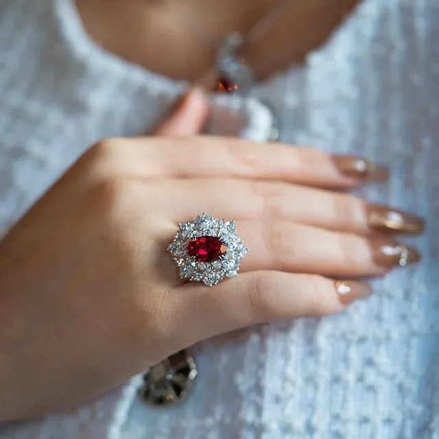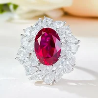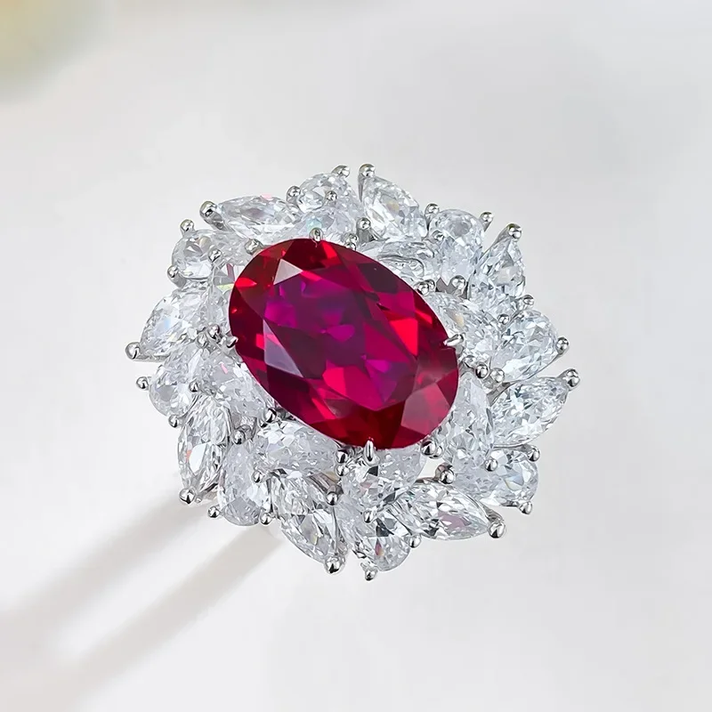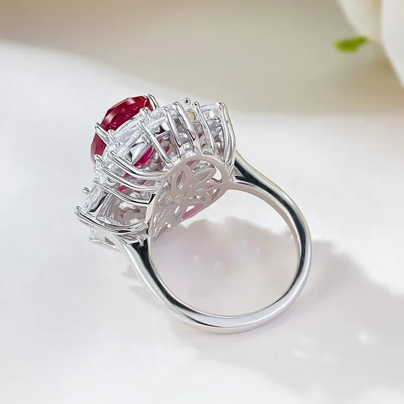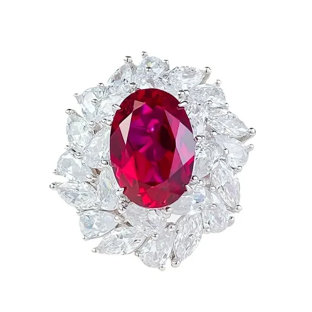 Luxurious S925 Silver Embedded Red Diamond Ring for Women by Loudong Gold Jewelry High Carbon Diamond Pigeon Blood Red Egg