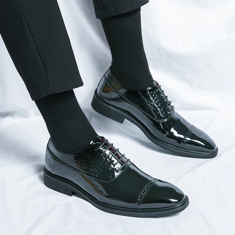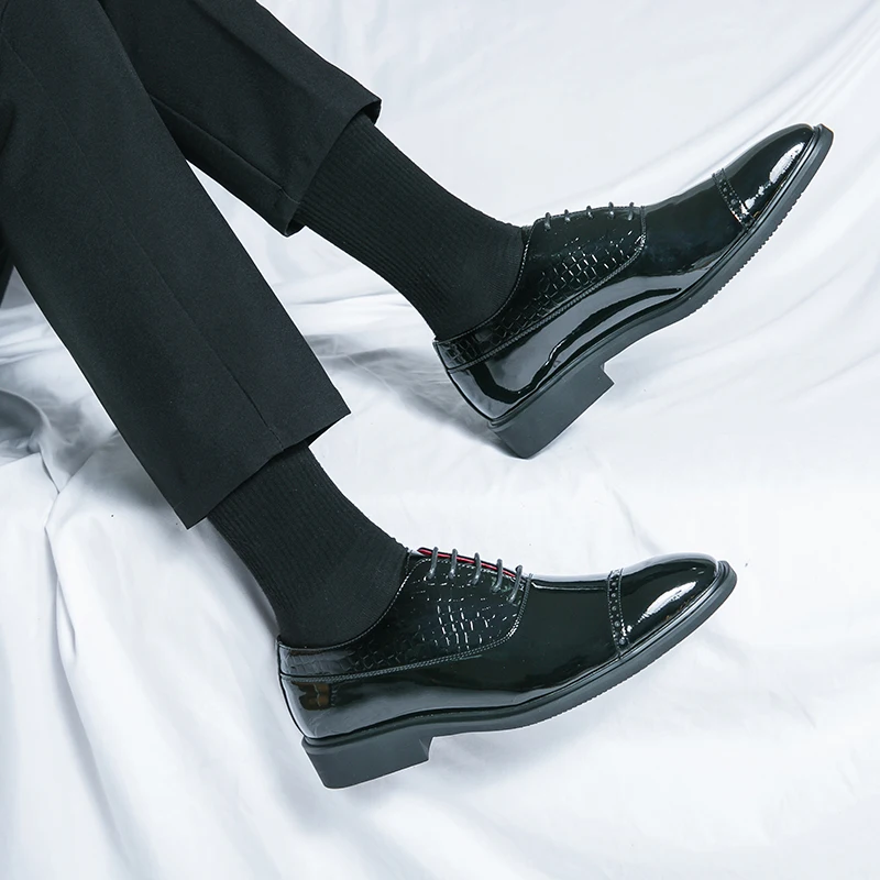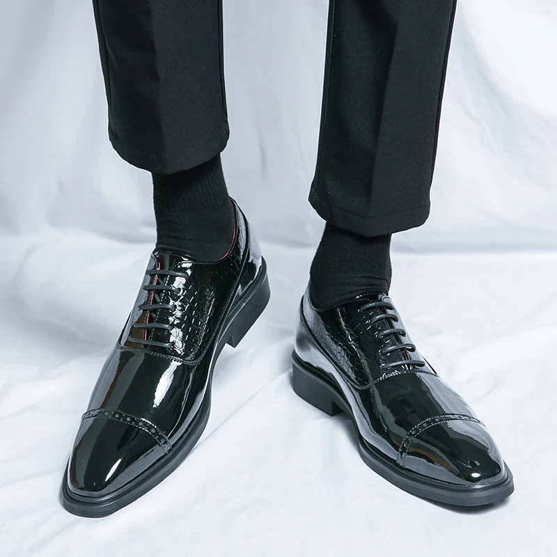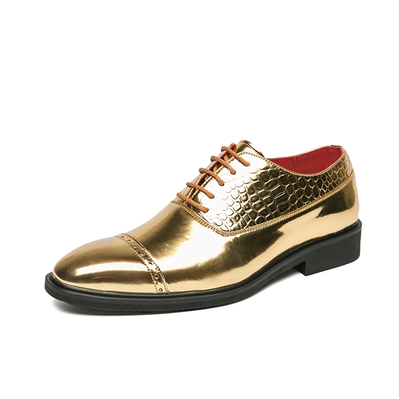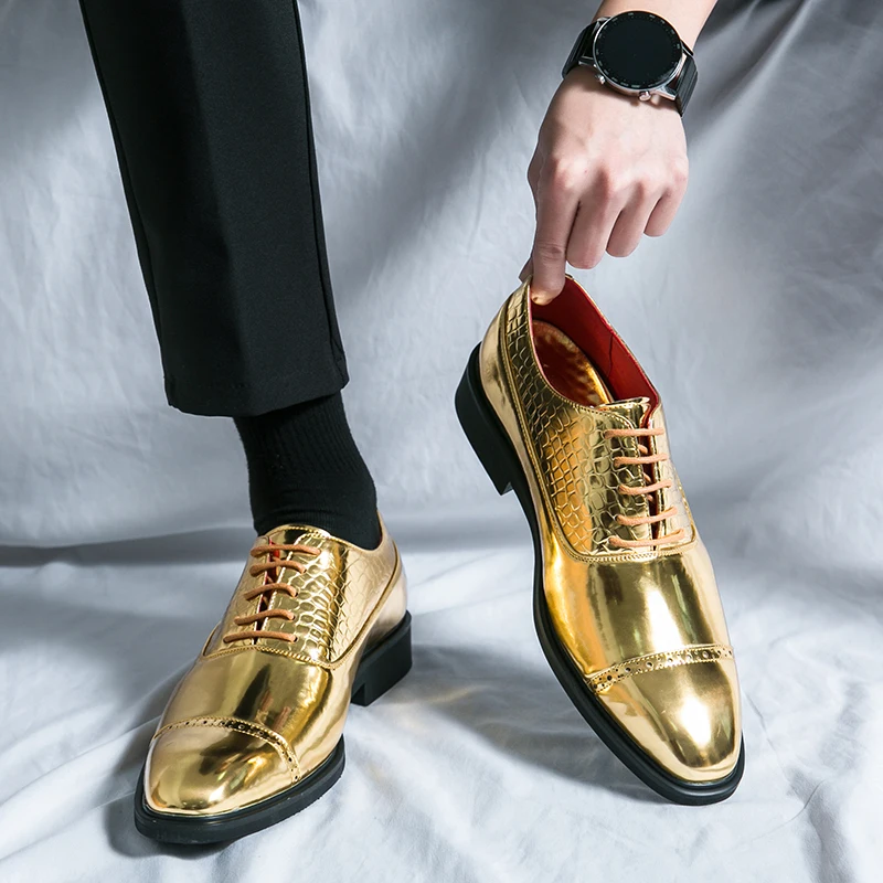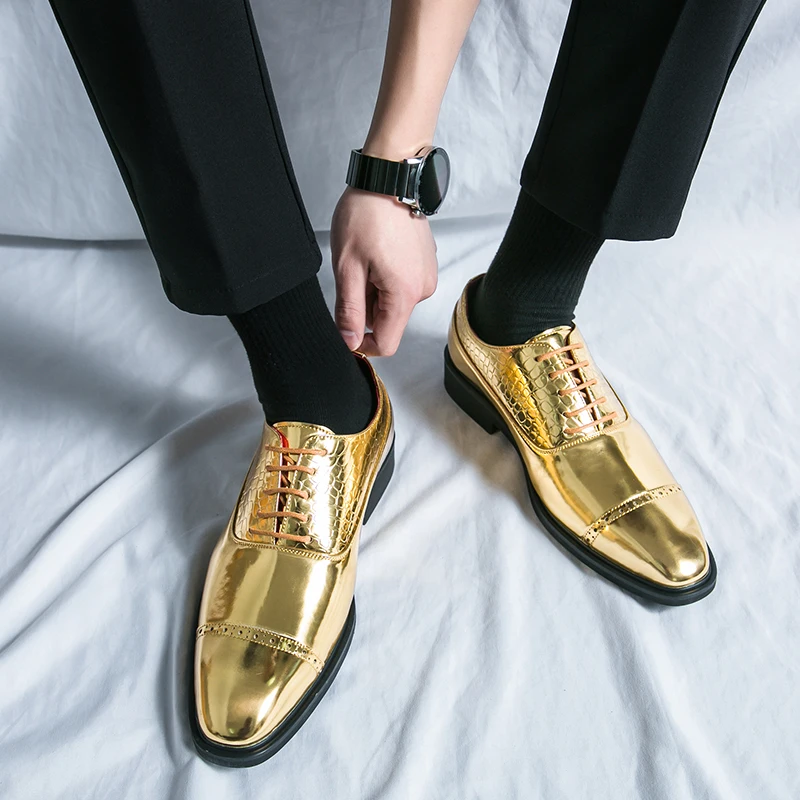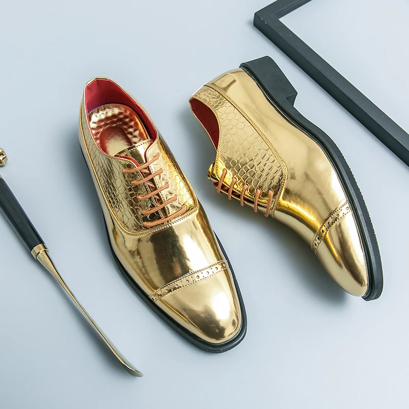 Luxury Brand High-end Golden Business Dress Shoes Lace Up Men’s Shiny Leather Shoes Elegant Men’s