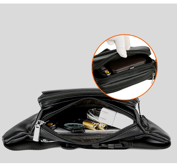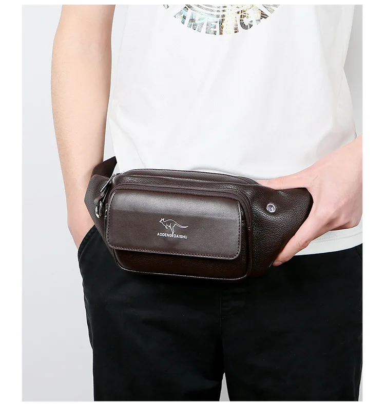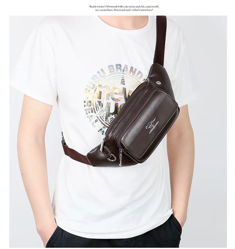 Luxury Brand Waist Bag Men Leather Fanny Pack Chest Bag Male Casual Belt Bags Sling Crossbody Bum Bag