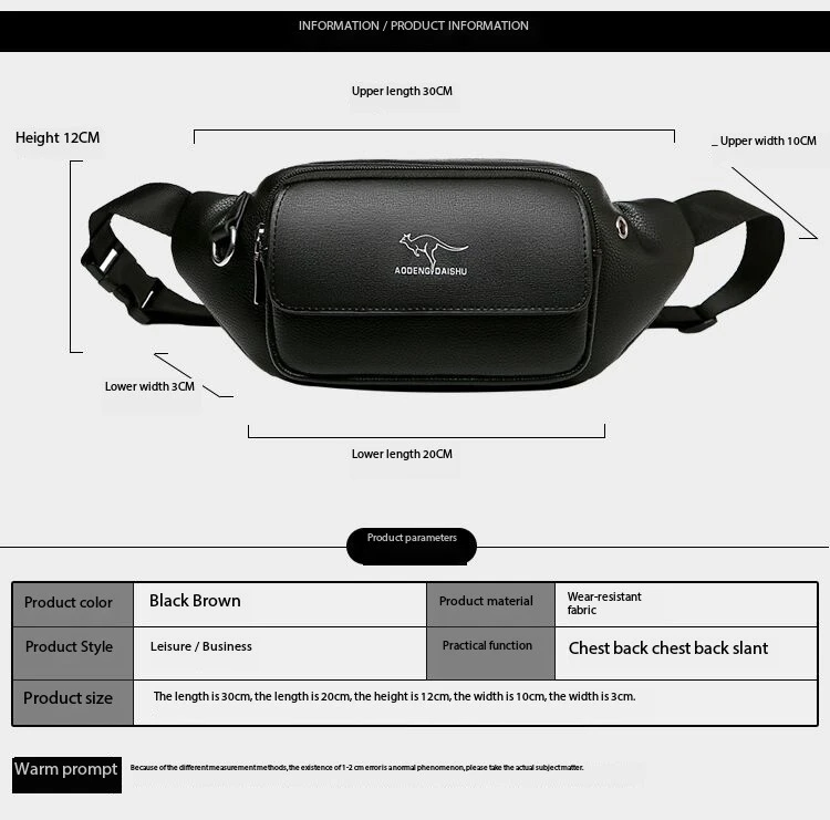 Be the first to review “Luxury Brand Waist Bag Men Leather Fanny Pack Chest Bag Male Casual Belt Bags Sling Crossbody Bum Bag”