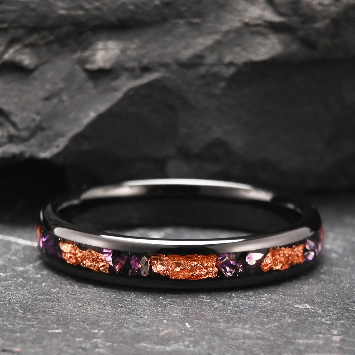 The channel setting of the ring highlights its inlay material, creating a unique and eye-catching design.