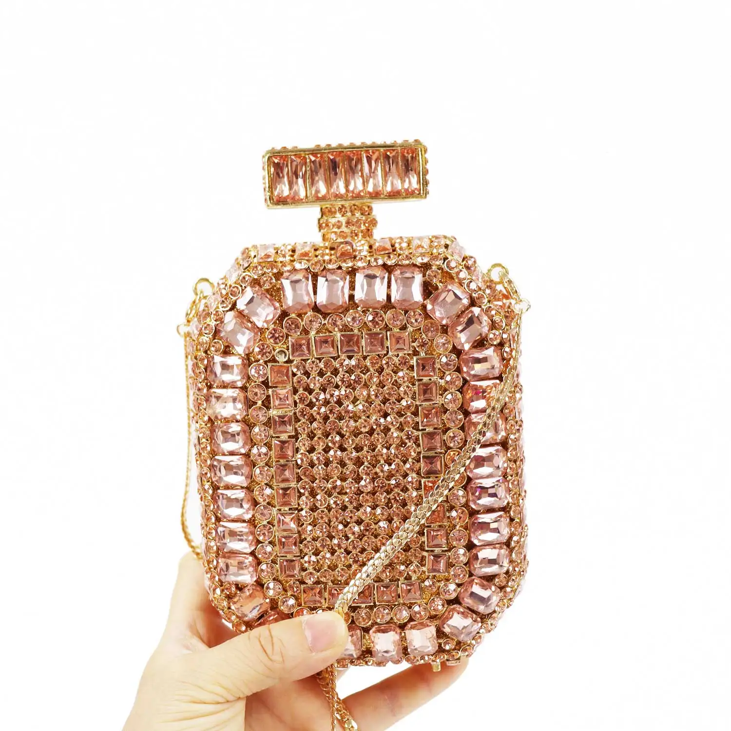 Alizekerr Perfume Bottle Crystal Evening Bags Women Gorgeous Luxury Rhinestone Square Metallic Purses And Handbags Wedding Party