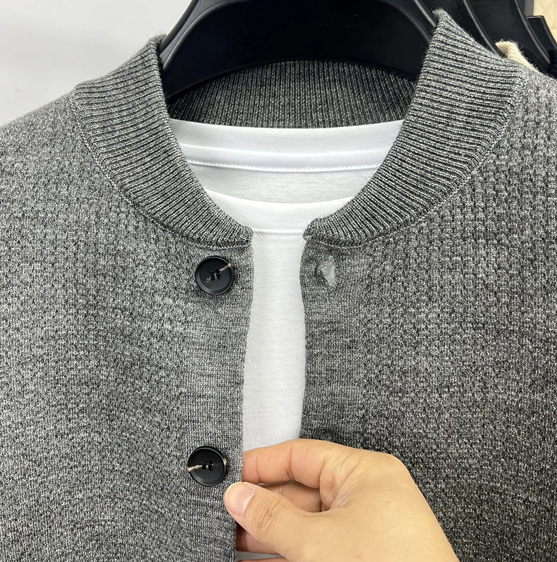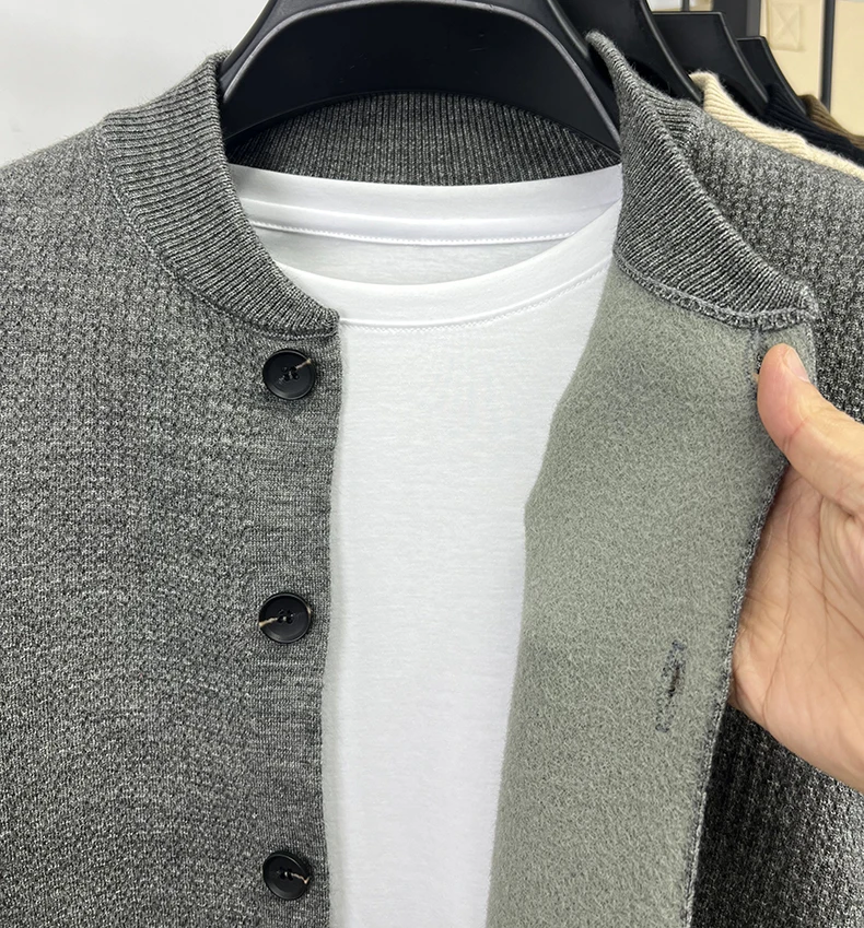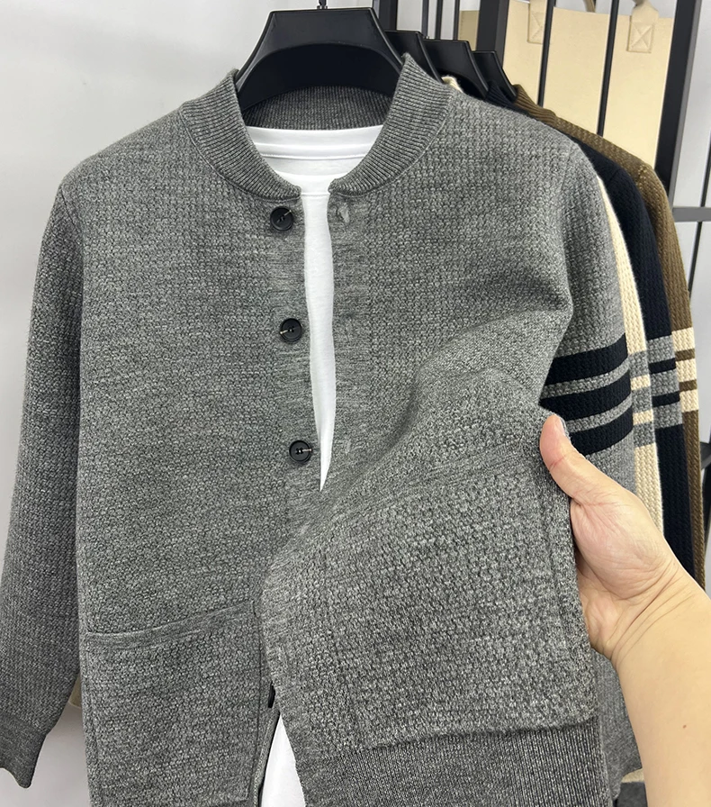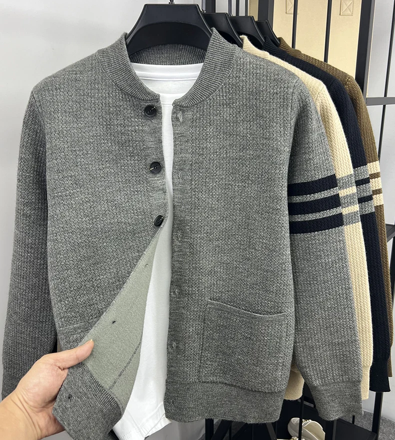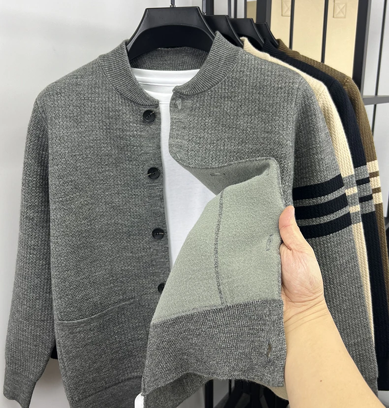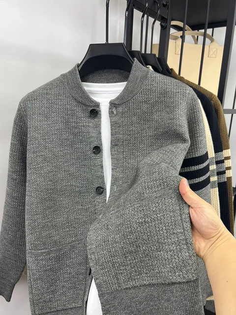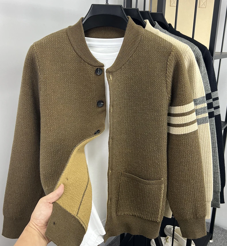Luxury Design Brand Men’s Knit Cardigan Baseball Collar 3 Stripe Sweater Coat Korean Fashion Velvet