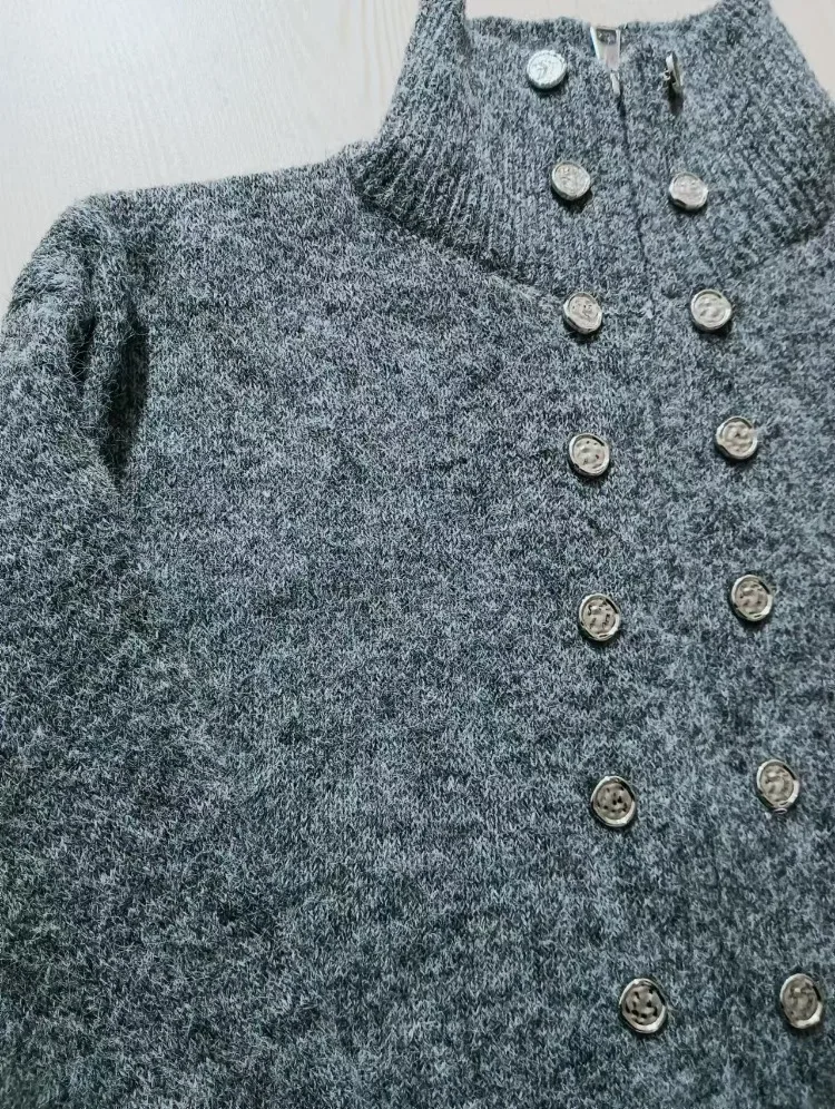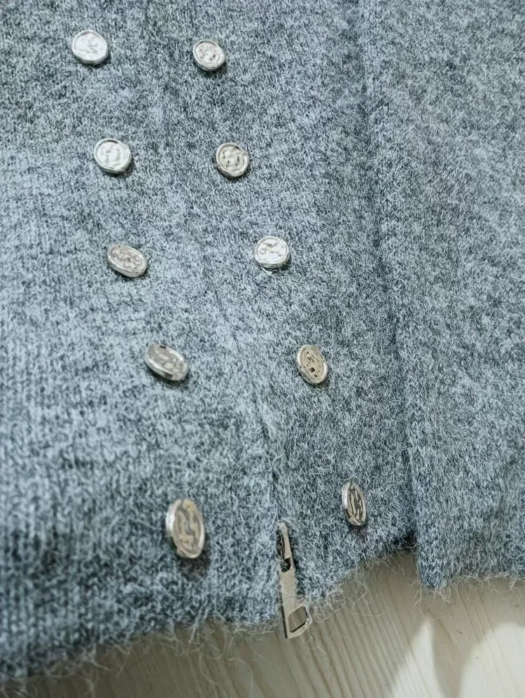 2024 Woman's Grey Knitted Sweater Coats With Zipper Soild Crop Tops Cardigan Lady Casual Regular Fit Versatile Style