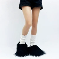 Luxury Fur Slippers Women’s Round Toe Fur Slippers Women’s Shoes Women’s Thick Sole