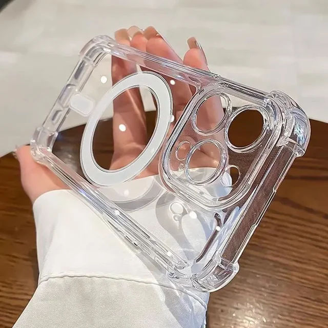 Luxury Magnetic Wireless Charge For Magsafe Case for iPhone 11 12 13 14 15 16e Pro Max Plus Transparent Shockproof Soft Bumper Cover