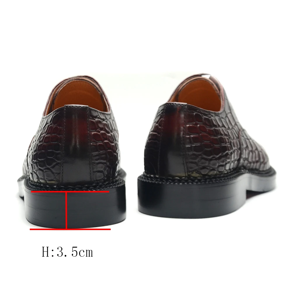 Luxury Man Dress Shoes Increased Height Oxfords Shoe Genuine Cowhide Leather Crocodile Pattern Elegant Wedding Male Footwear