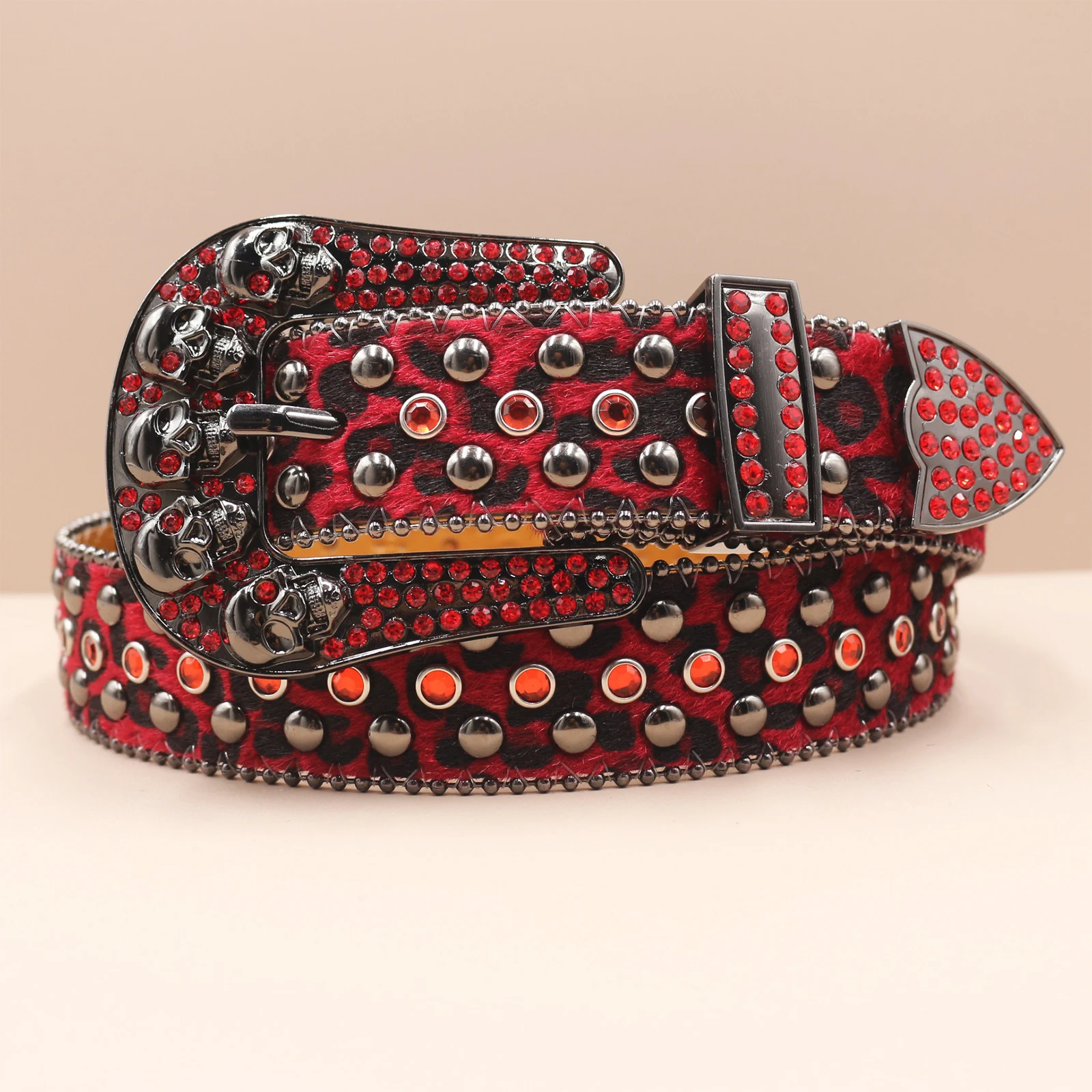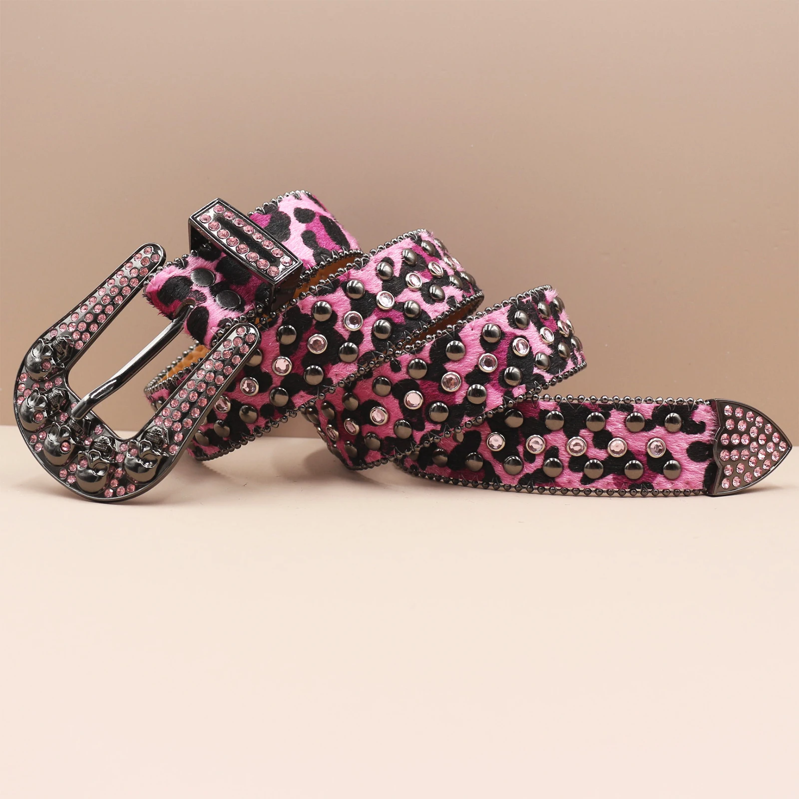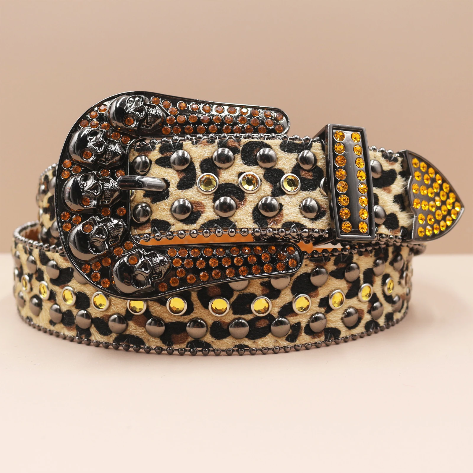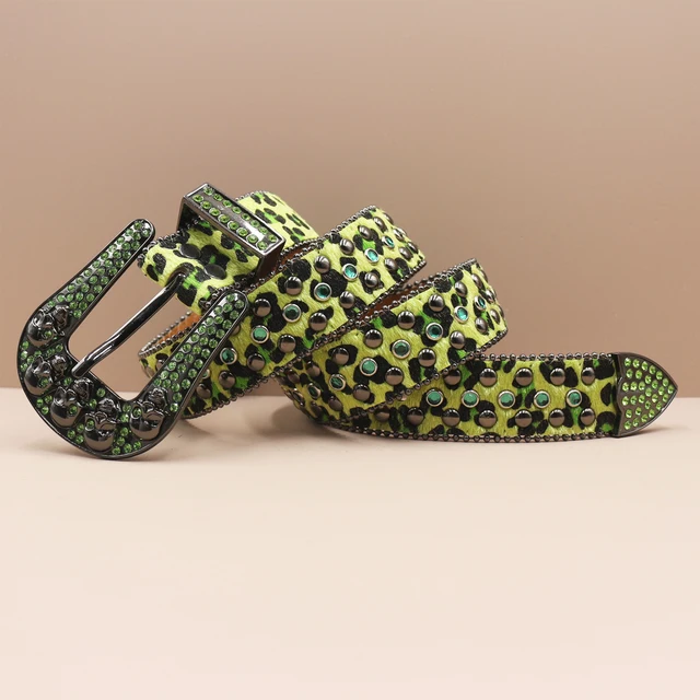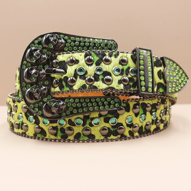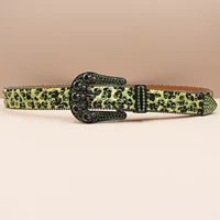 Leopard Goth Rhinestones Belts Women PU Leather Straps Rhinestones Belts Cowgirl Y2K Girls Fashion Belt for Jeans Men