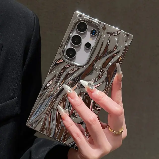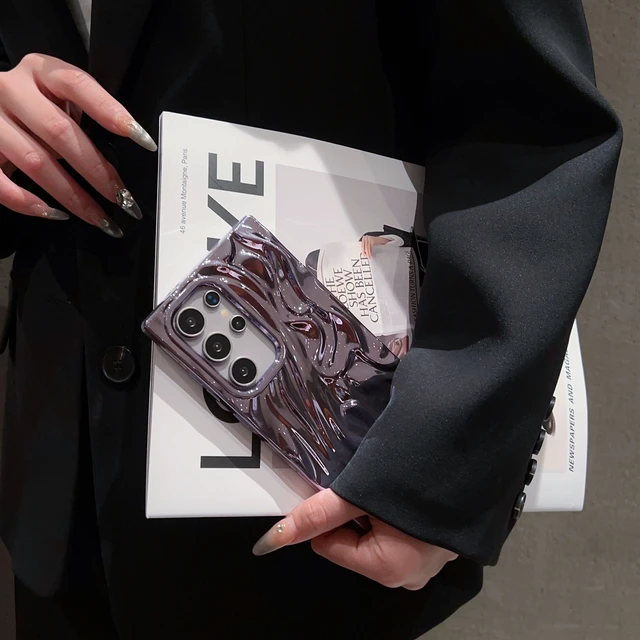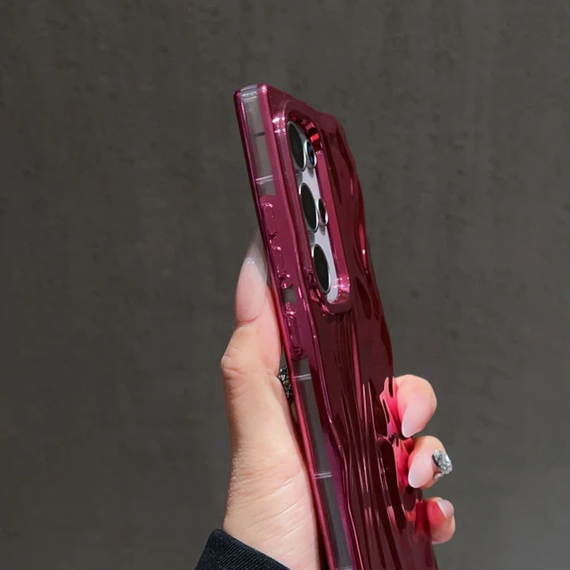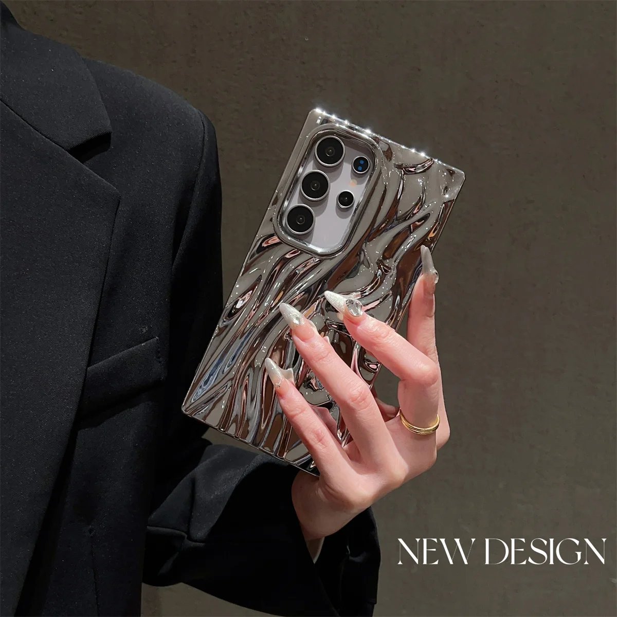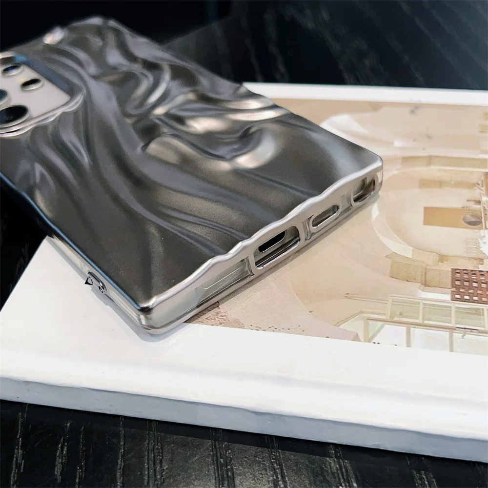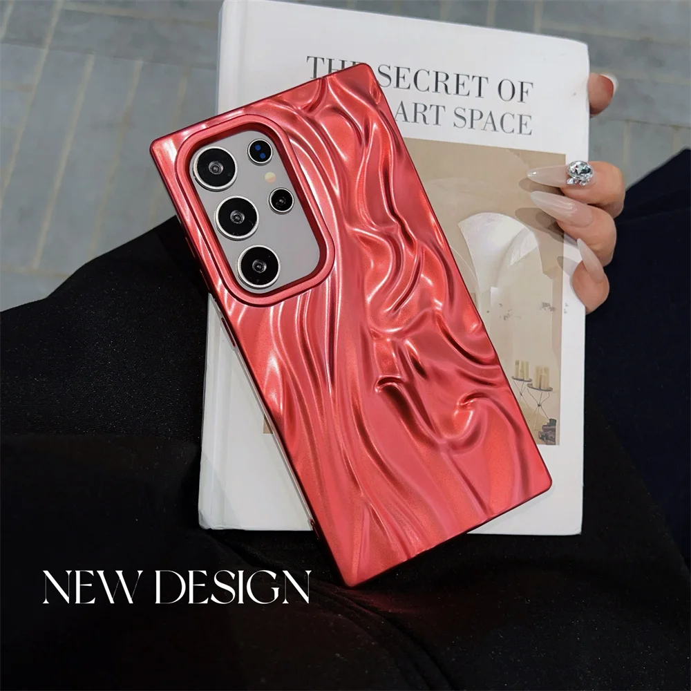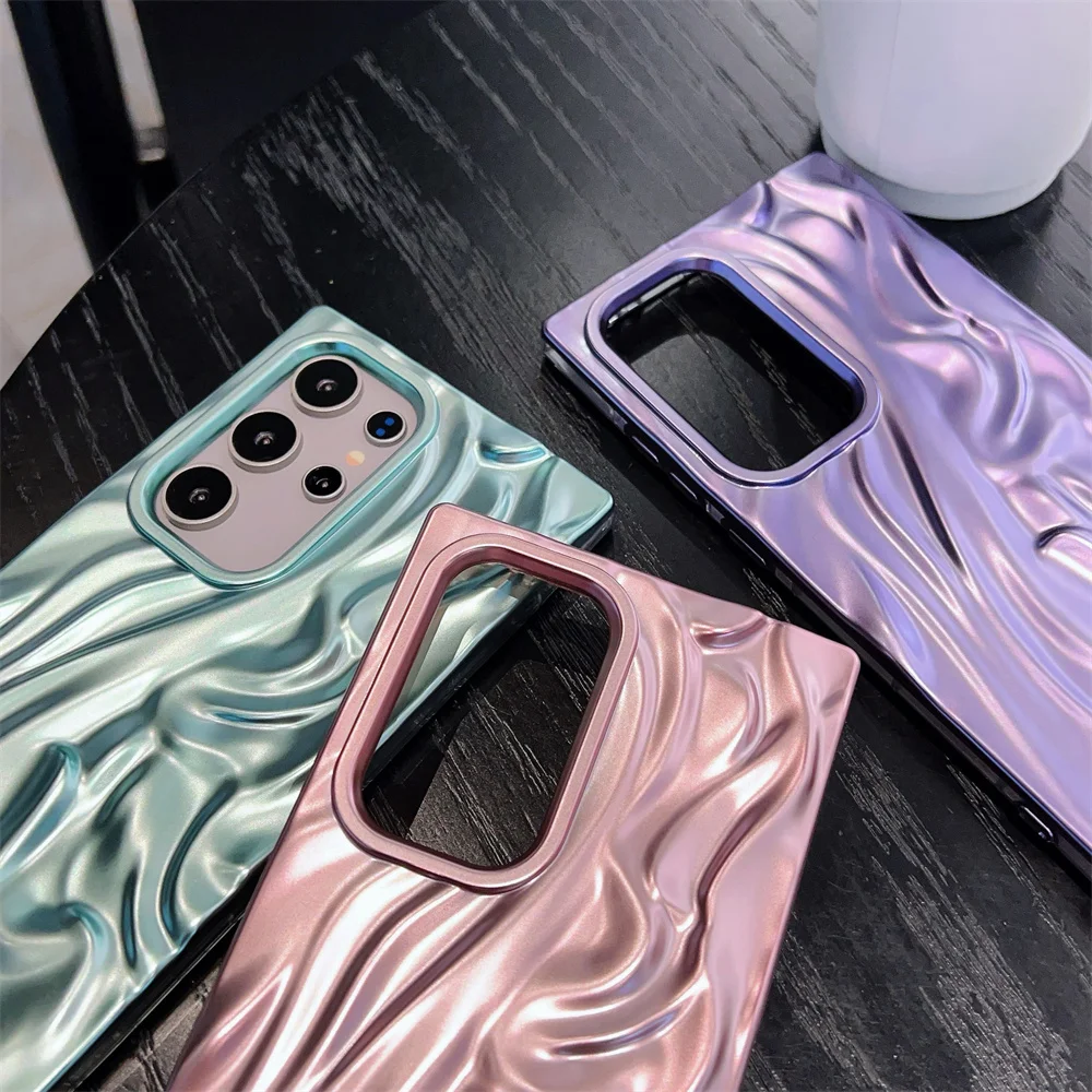 Luxury Plating 3D Wrinkle Wave Case For Samsung S25 S24 Plus S23 Ultra FE A56 A36 A26 A16 A06 A55 A35 A25 A15 Fashion Shiny Capa