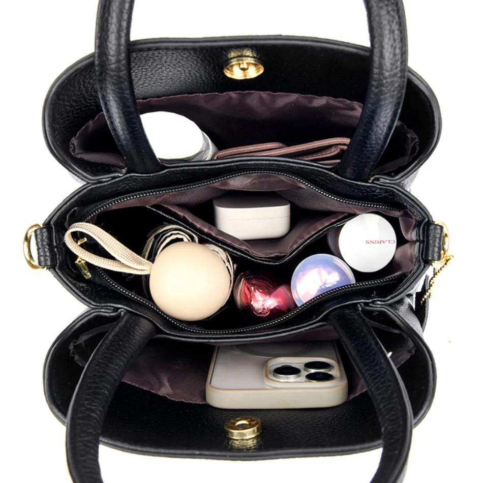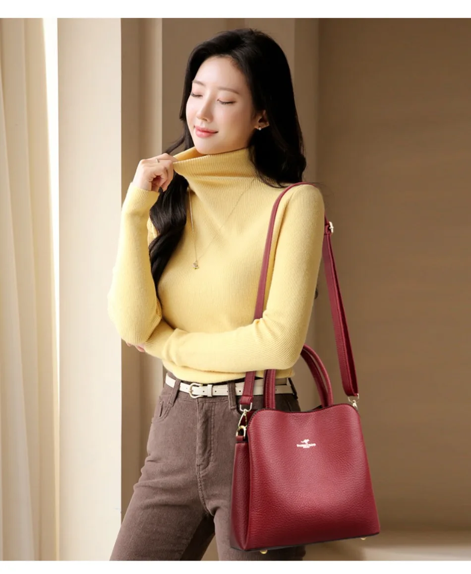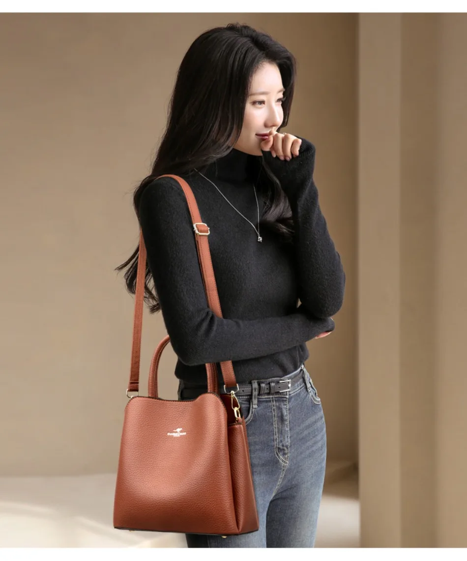 Luxury Soft Tote Bag 3 PU Leather Layers Fashion Crossbody Bag Designer Shoulder Bags For Women Elegant