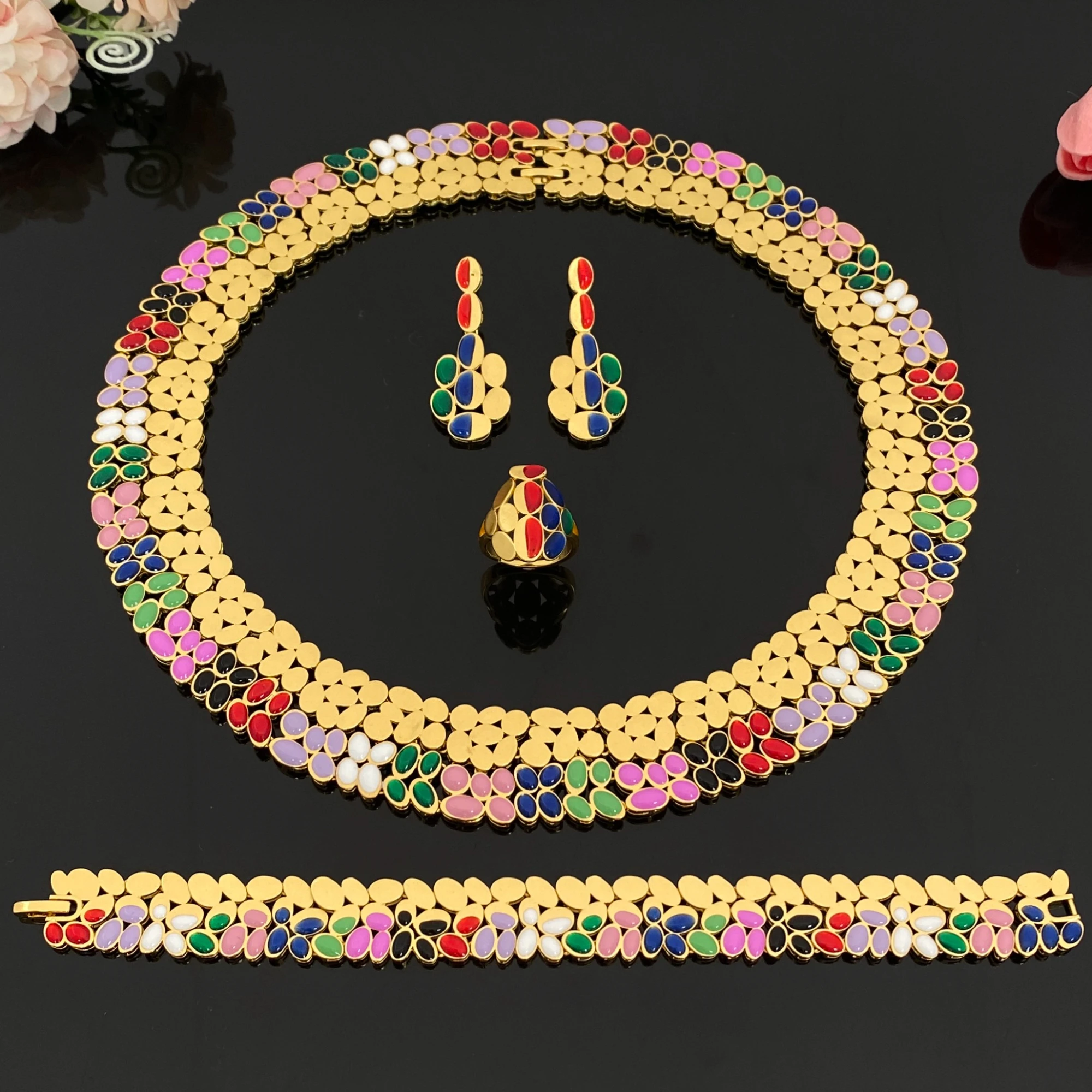 Luxury Women's Jewelry 4-Piece Set Necklace Earrings Ring Bracelet Fashion Gold Plated Gift for Dubai Saudi Women Party Jewelry