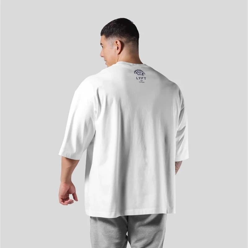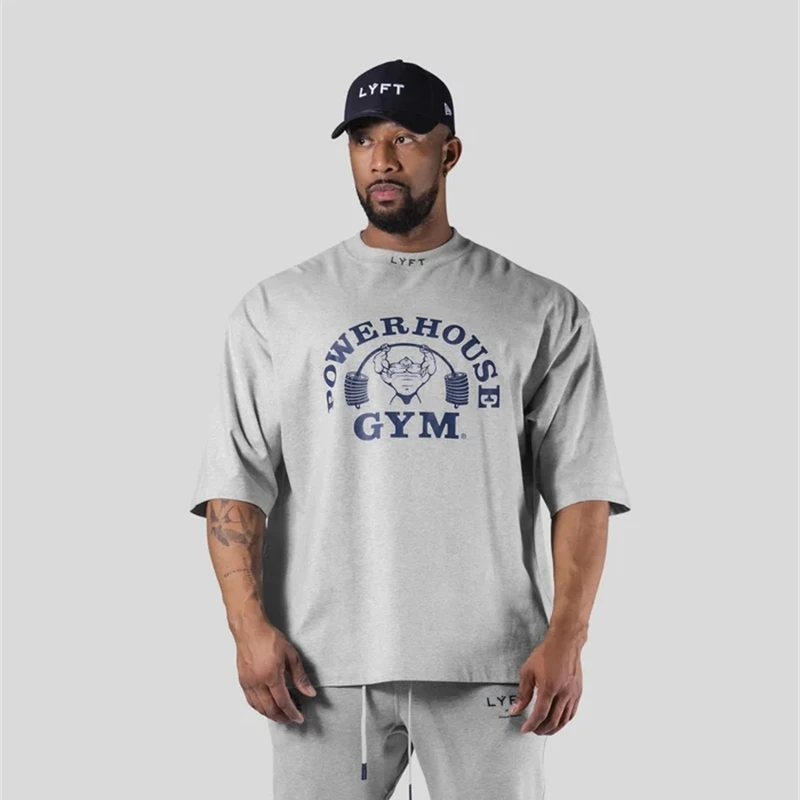 LYFT Jointly Men Running Sports Cotton T-shirt Gym Fitness Bodybuilding Loose Print Shirt Summer Male