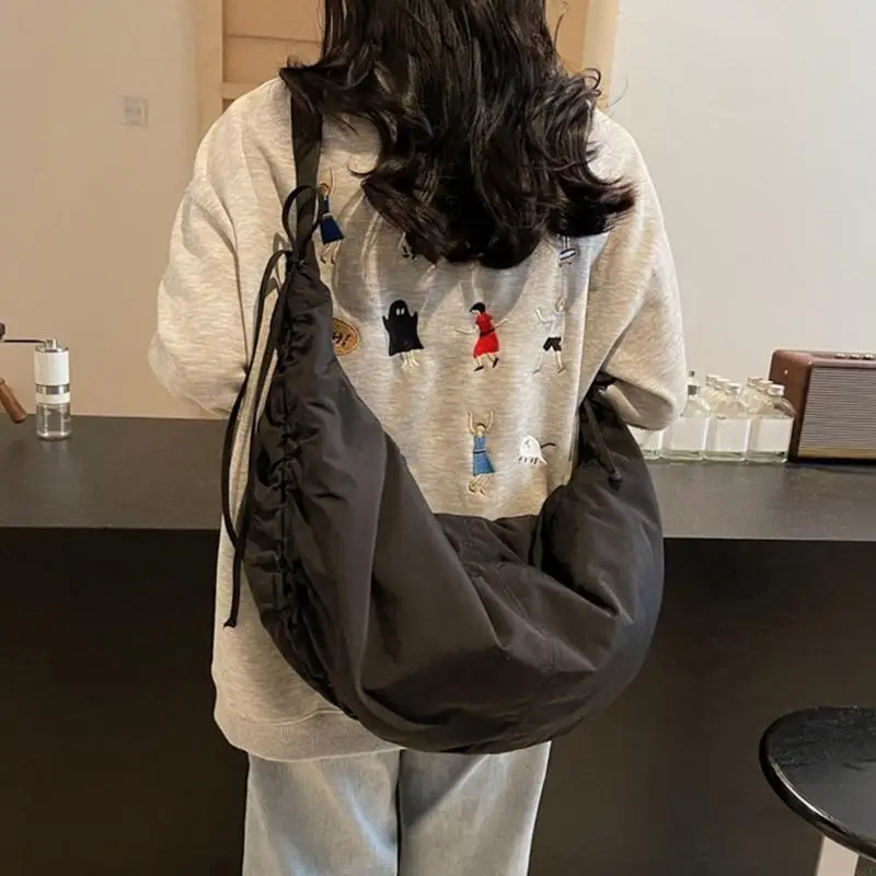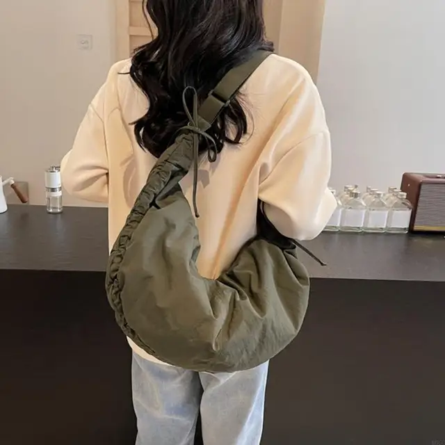M6CC Trendy Crossbody Bag for Both Women and Men Shoulder Bags Nylon Construction with Eye Catching Pleats