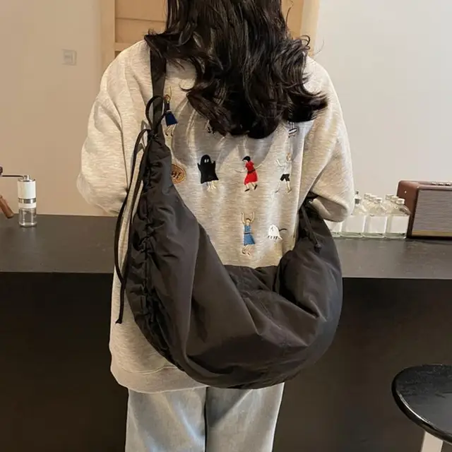 M6CC Trendy Crossbody Bag for Both Women and Men Shoulder Bags Nylon Construction with Eye Catching Pleats for Daily Outings