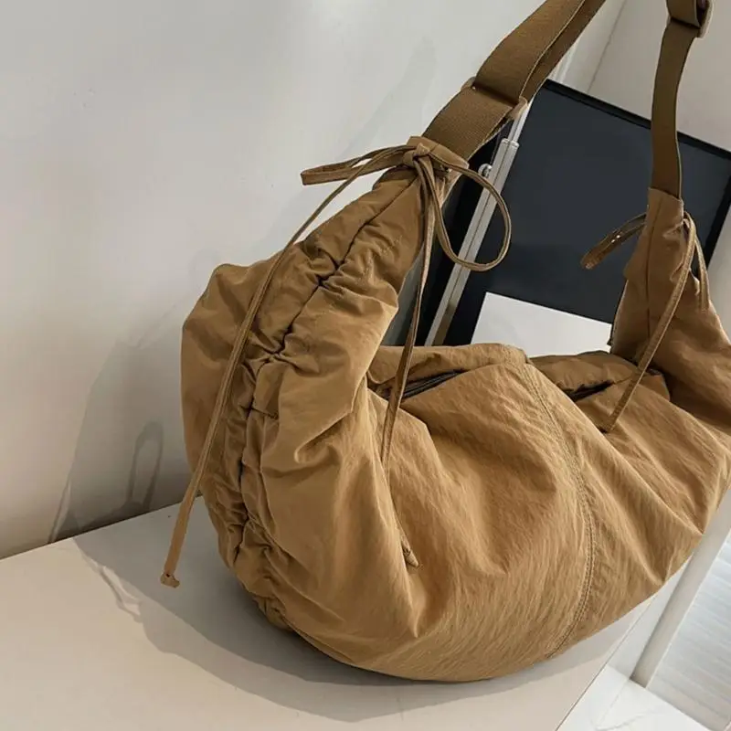 Craft from nylon and polyester, unique pleated designs, crossbody bag for women and men.