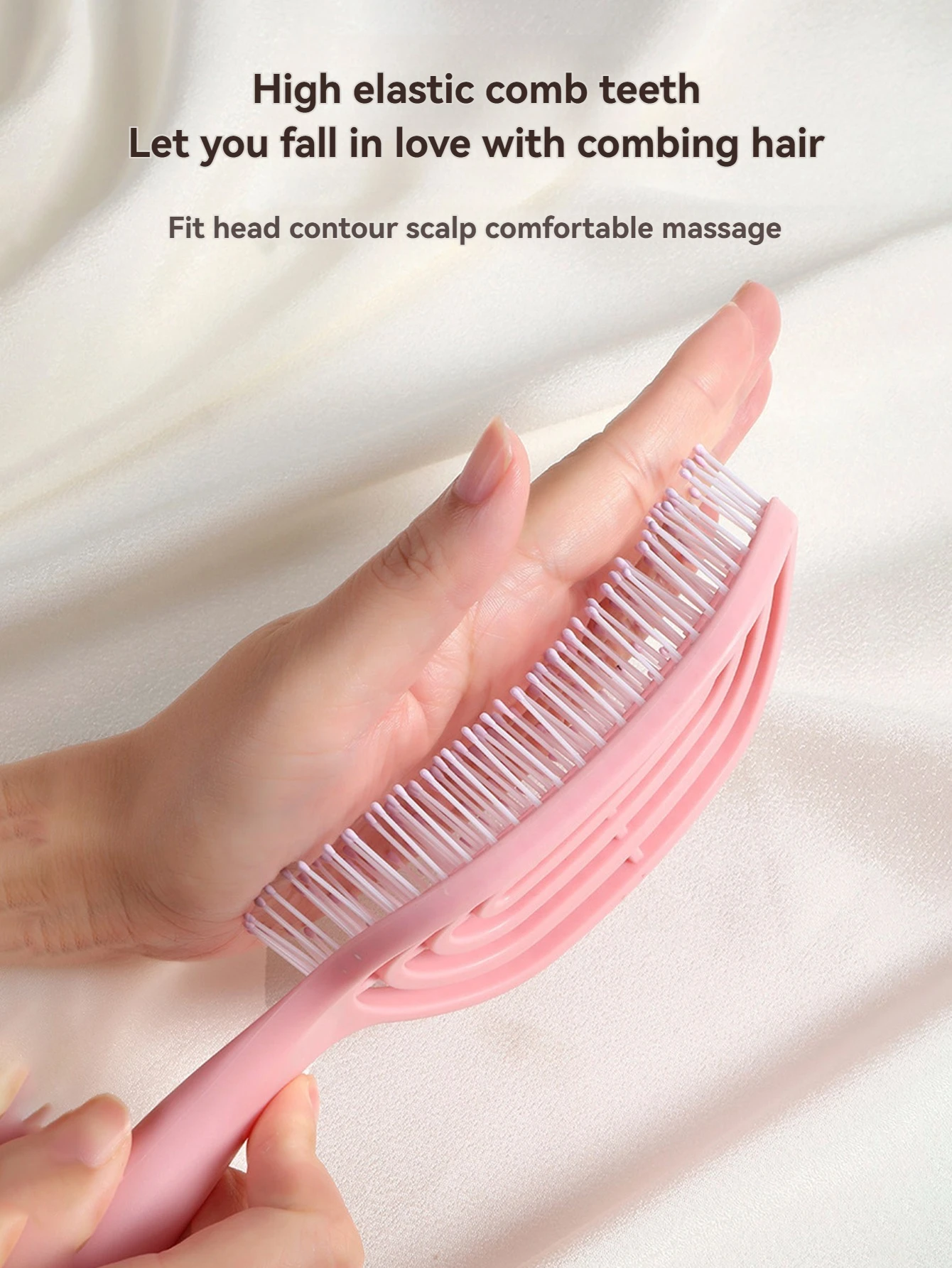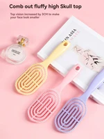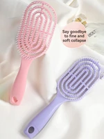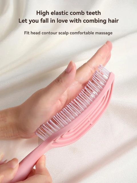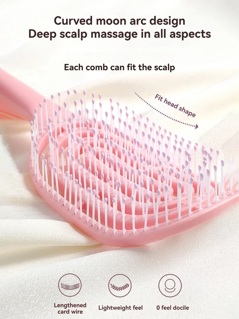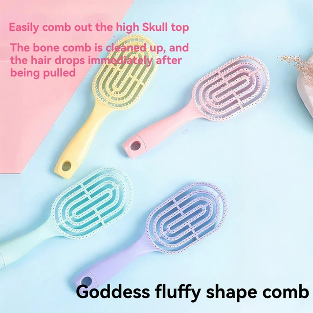 Macaron ribbed comb, crescent-shaped arc fits the head, 9 curved hollow teeth for quick-drying roots, saving 50% time, high-elasticity comb teeth massage and prevent hair loss, hanging hole design prevents mold and makes storage easy, say goodbye to flat, fine hair with 3D volume, instantly smooth frizzed hair on the couch.