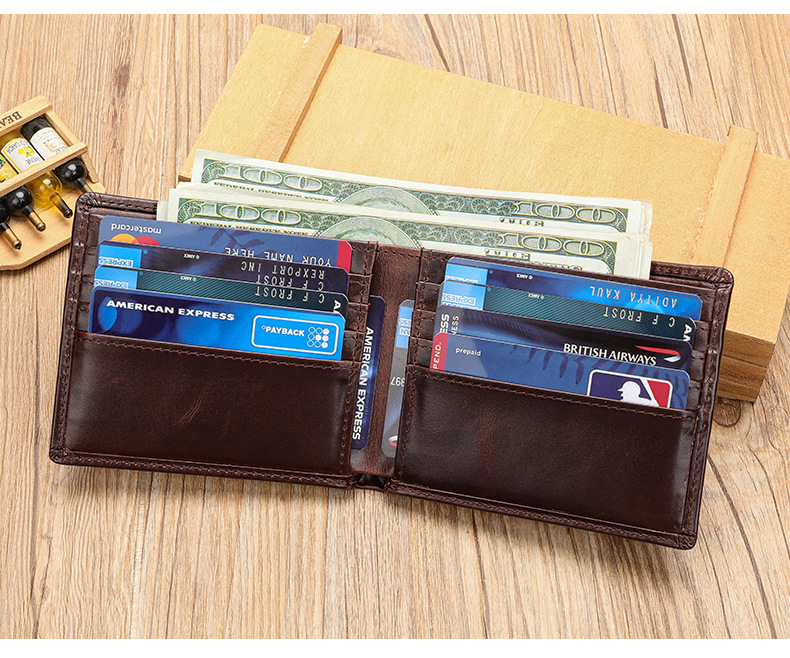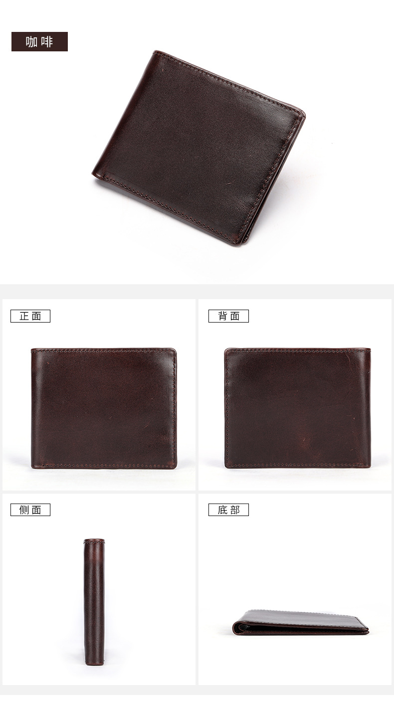 Genuine Leather Wallet Short Style Top Layer Cowhide Multi-Card Tri-Fold AirTag Men's Clip Men's Wallet Pure Color Artificial Le