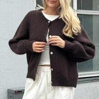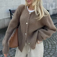 Korean Round Neck Single Breasted Solid Color Knitted Cardigan Women's Autumn and Winter New Loose Casual Soft Sweater Jacket
