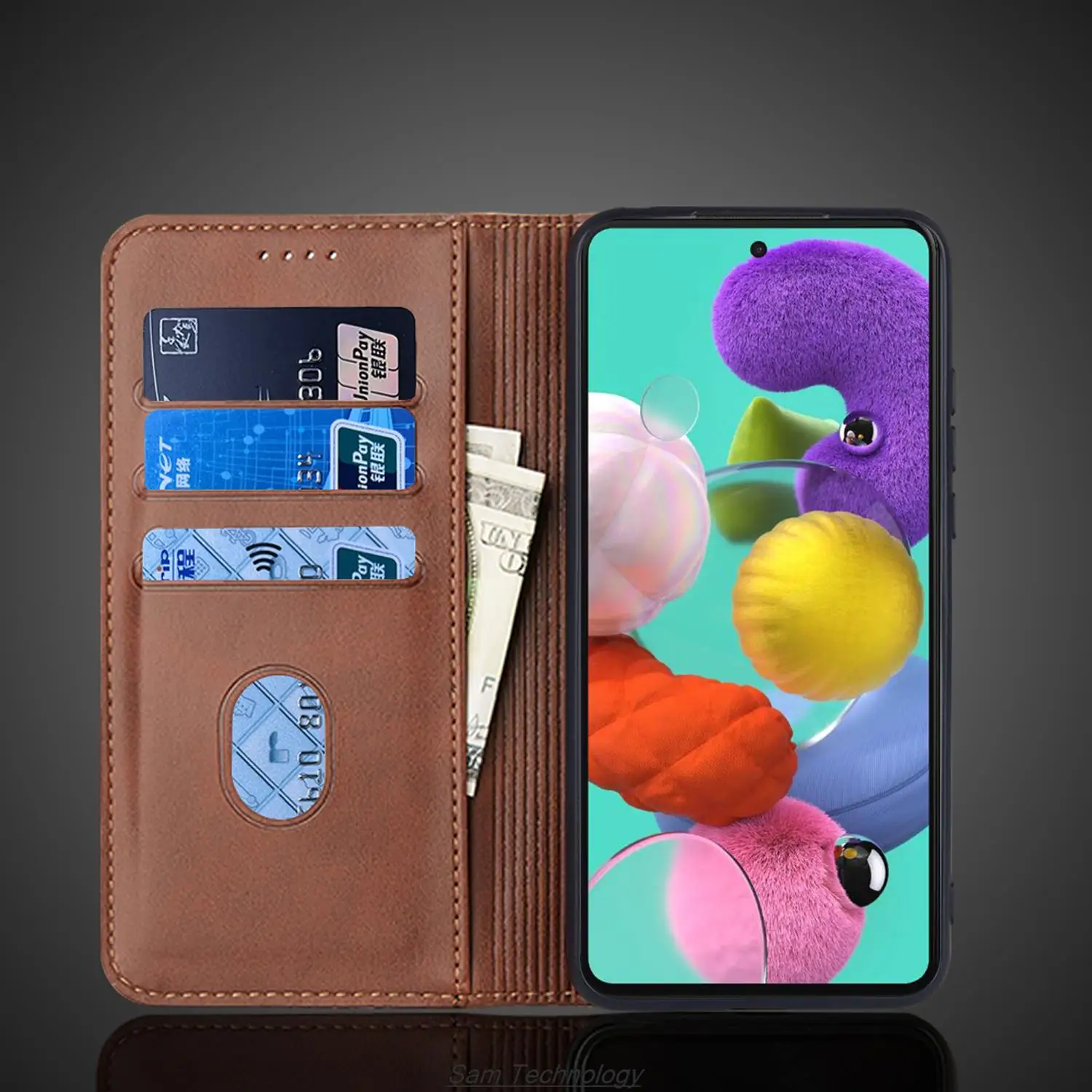 Magnetic attraction Leather Case for Samsung Galaxy A51 / Galaxy A51 5G Holster Flip Cover Case Wallet Phone Bags Fundas Coque Function :1 , 100% Brand New and Good Quality .2 , Strong Magnetic Attraction , a little heavy ,and phone cover inside is Silicone .3 , fashion look , Simple design .4 , With 2 Card Holder or Money Slot . Package include :if you choose “Only Case ” , it will include 1 piece case .if you choose “Case add Glass Film ” . it will include 1 piece case + 1 piece Tempered Glass Screen Protector .and Glass Film is Full Cover. Please pay attention . Â