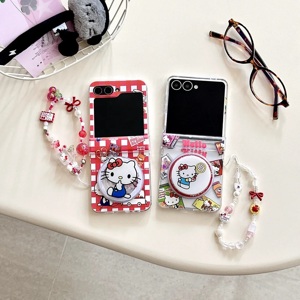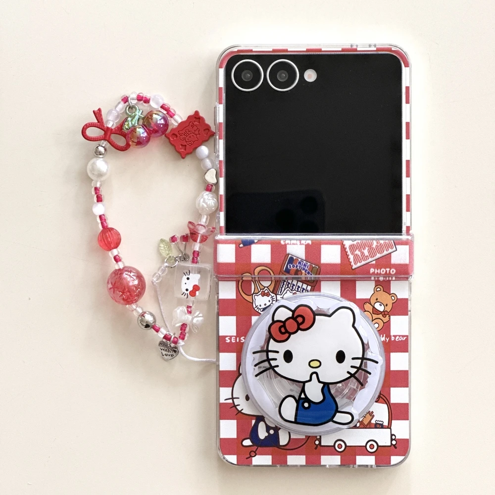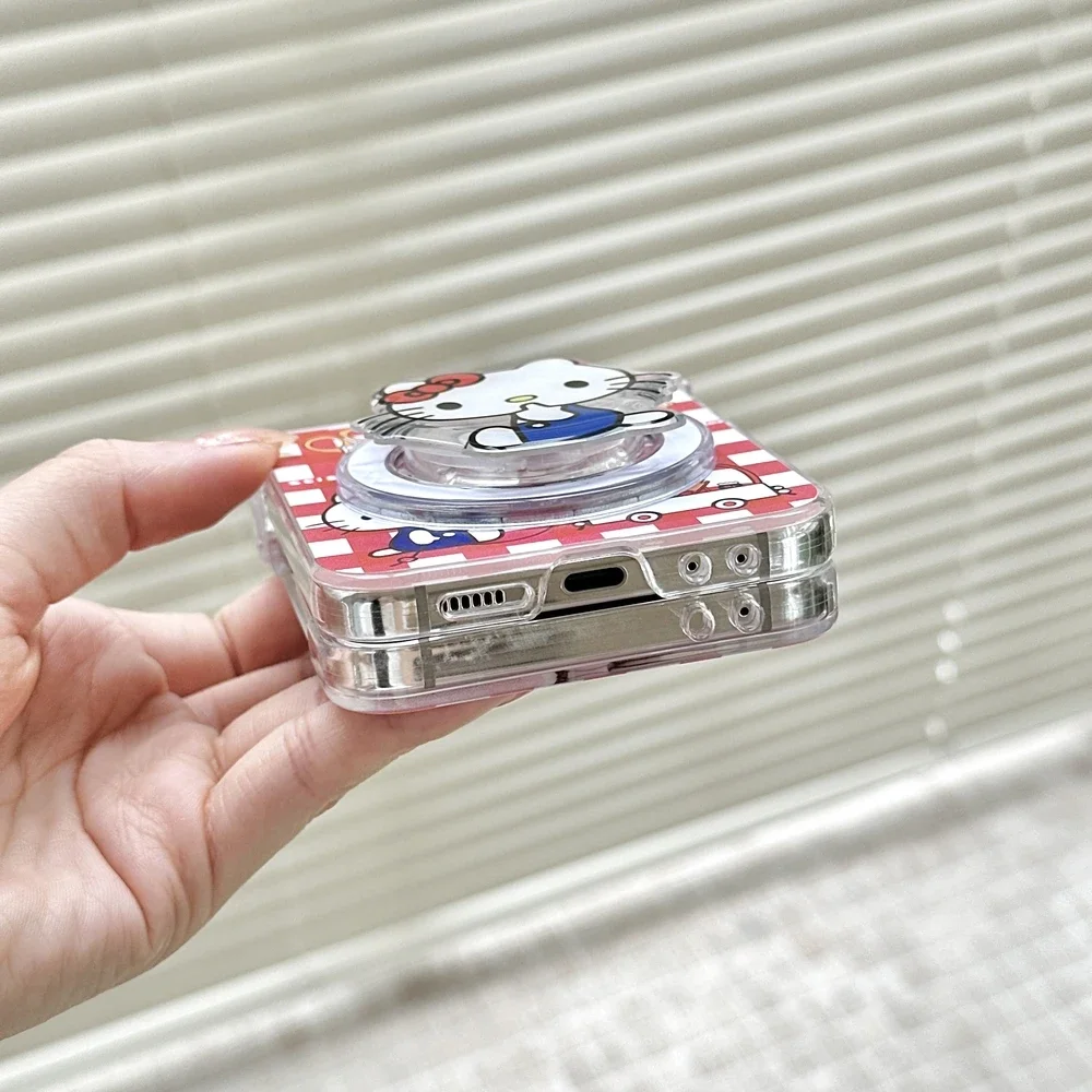 Magnetic Grip Holder Wireless Charge Phone Case For Samsung Galaxy Z Flip 7 6 5 4 Cute Cartoon Sanrio Hello Kitty Cover