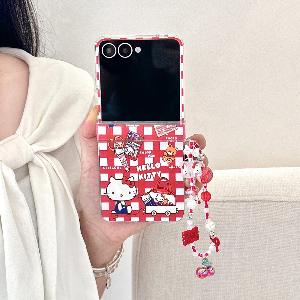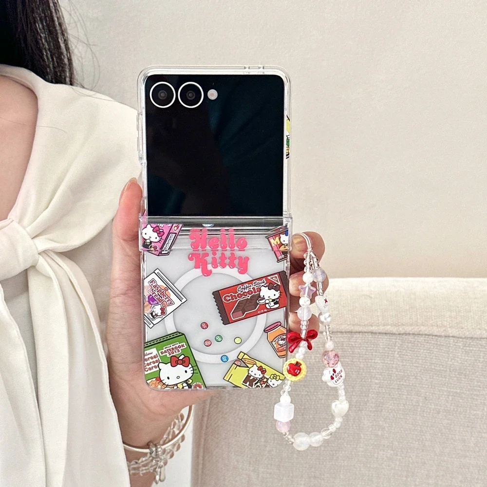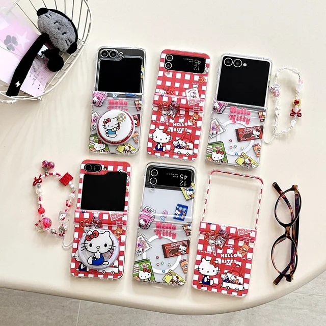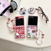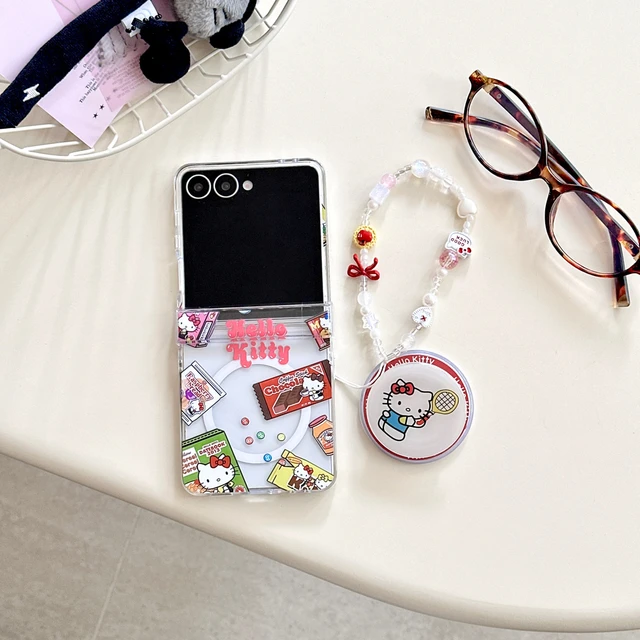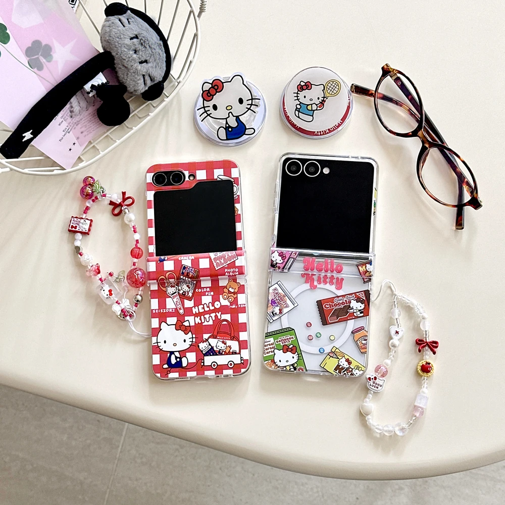 Magnetic Grip Holder Wireless Charge Phone Case For Samsung Galaxy Z Flip 7 6 5 4 Cute Cartoon Sanrio Hello Kitty Cover