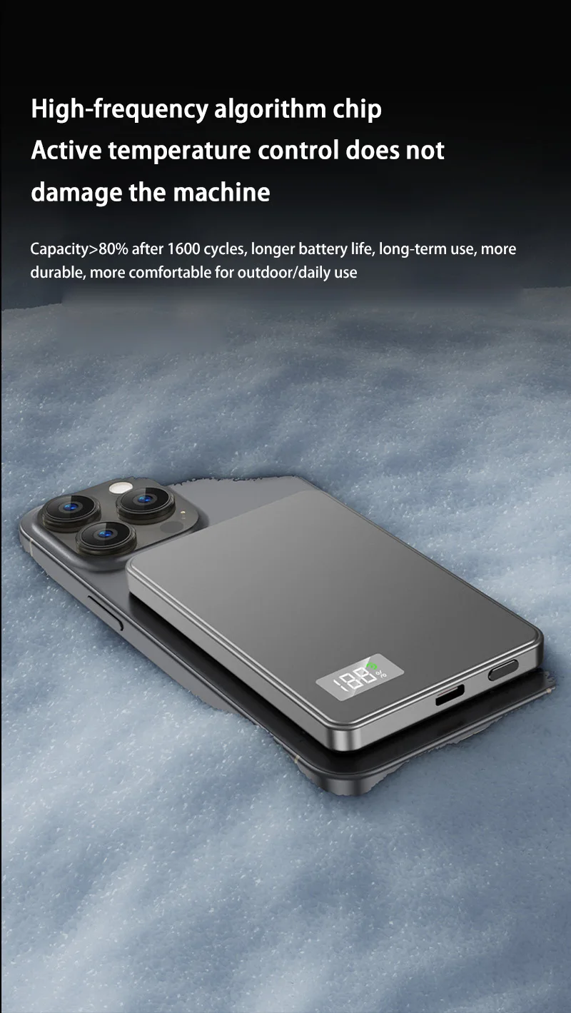 The Ultra Thin Power Bank for MagSafe is a game-changer in the world of portable power solutions. Designed with the latest MagSafe technology, this power bank ensures a secure and stable connection to your MagSafe-enabled devices, providing a reliable and efficient charging experience. The sleek, ultra-thin design makes it a stylish accessory that complements your device, while the magnetic wireless charging feature adds a touch of convenience and ease of use. Whether you’re at home, in the office, or on the go, this power bank is your go-to solution for keeping your devices charged and ready for action.