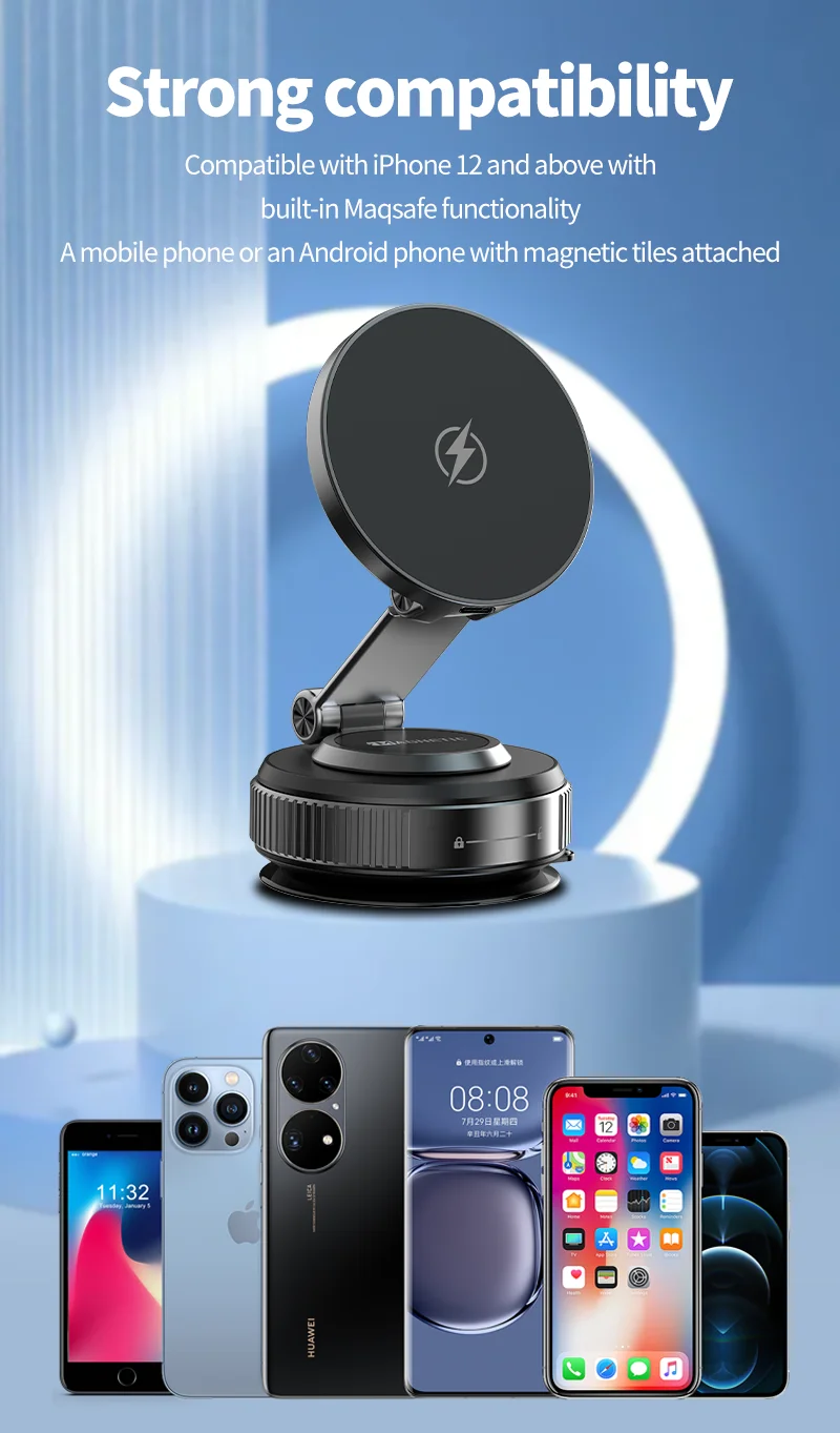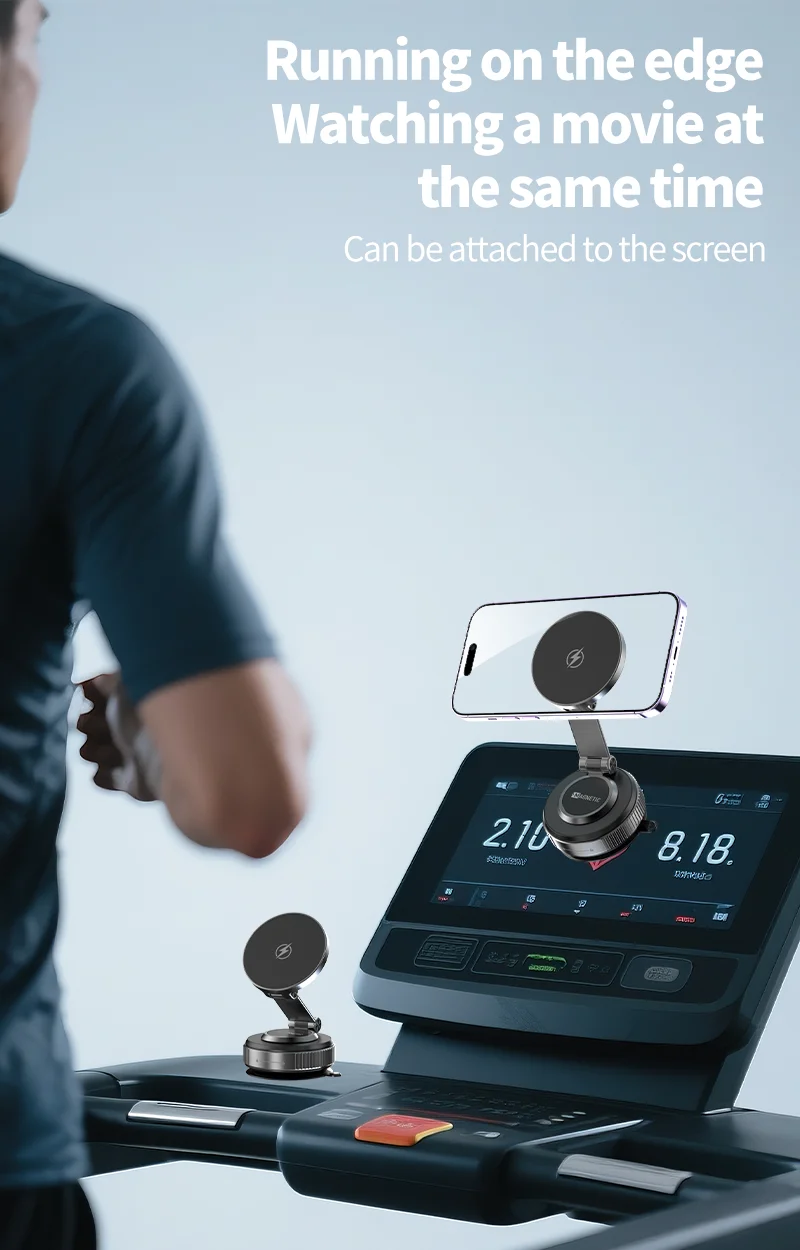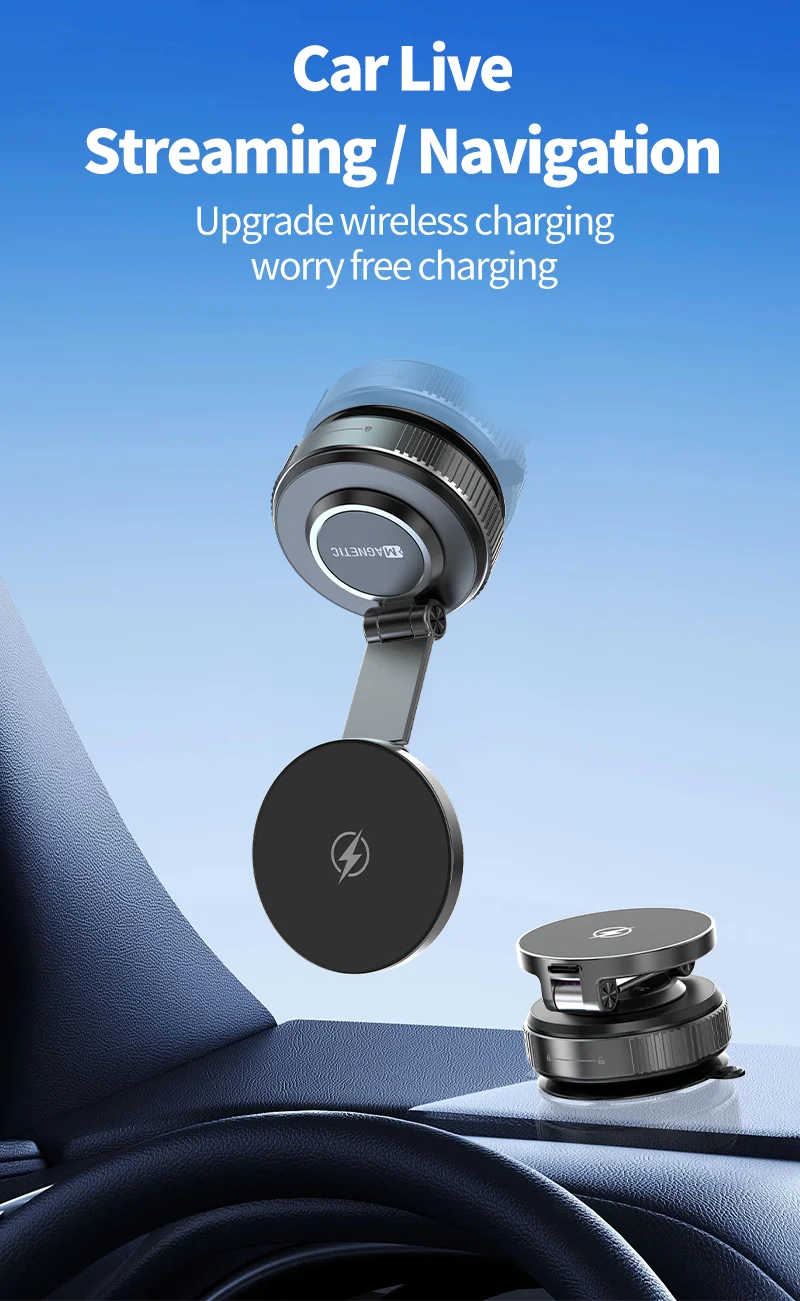 【All-Scenario Magnetic Car Charger Mount】Compatible with iPhone 15 car charger and non-MagSafe devices (via included metal ring). Secures heavy phones like iPhone 16 Pro Max even on rough roads. Use on dashboards, gym equipment, or kitchen tiles—wireless charging vacuum suction cup car phone holder versatility redefined.