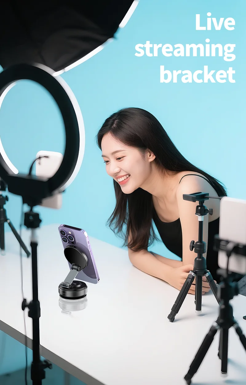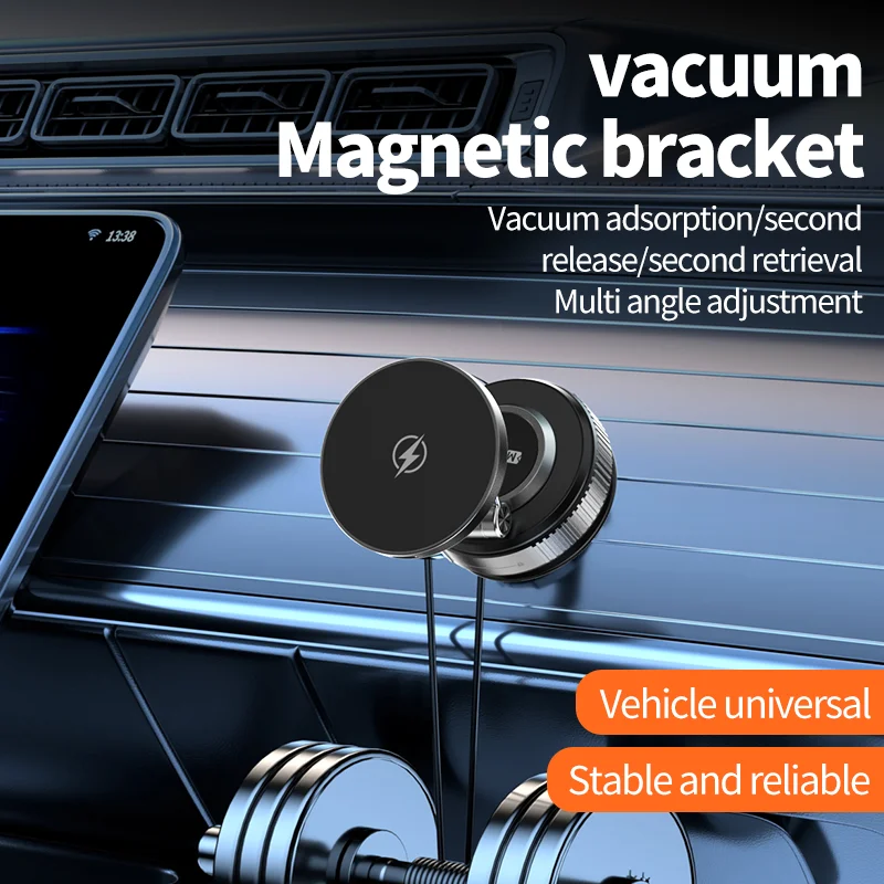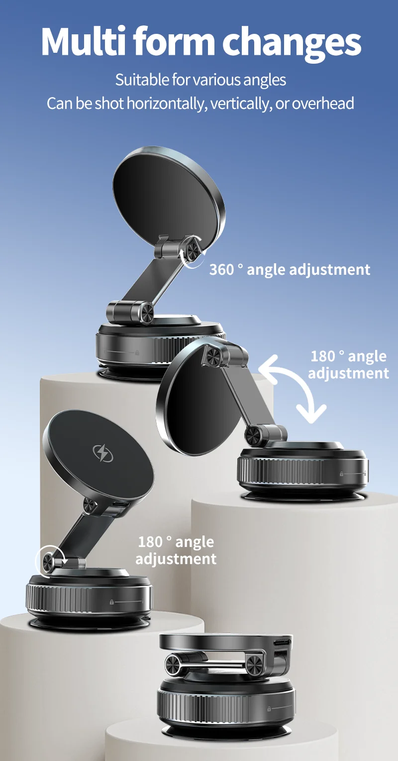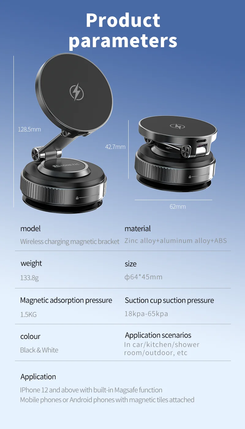 【All-Scenario Magnetic Car Charger Mount】Compatible with iPhone 15 car charger and non-MagSafe devices (via included metal ring). Secures heavy phones like iPhone 16 Pro Max even on rough roads. Use on dashboards, gym equipment, or kitchen tiles—wireless charging vacuum suction cup car phone holder versatility redefined.